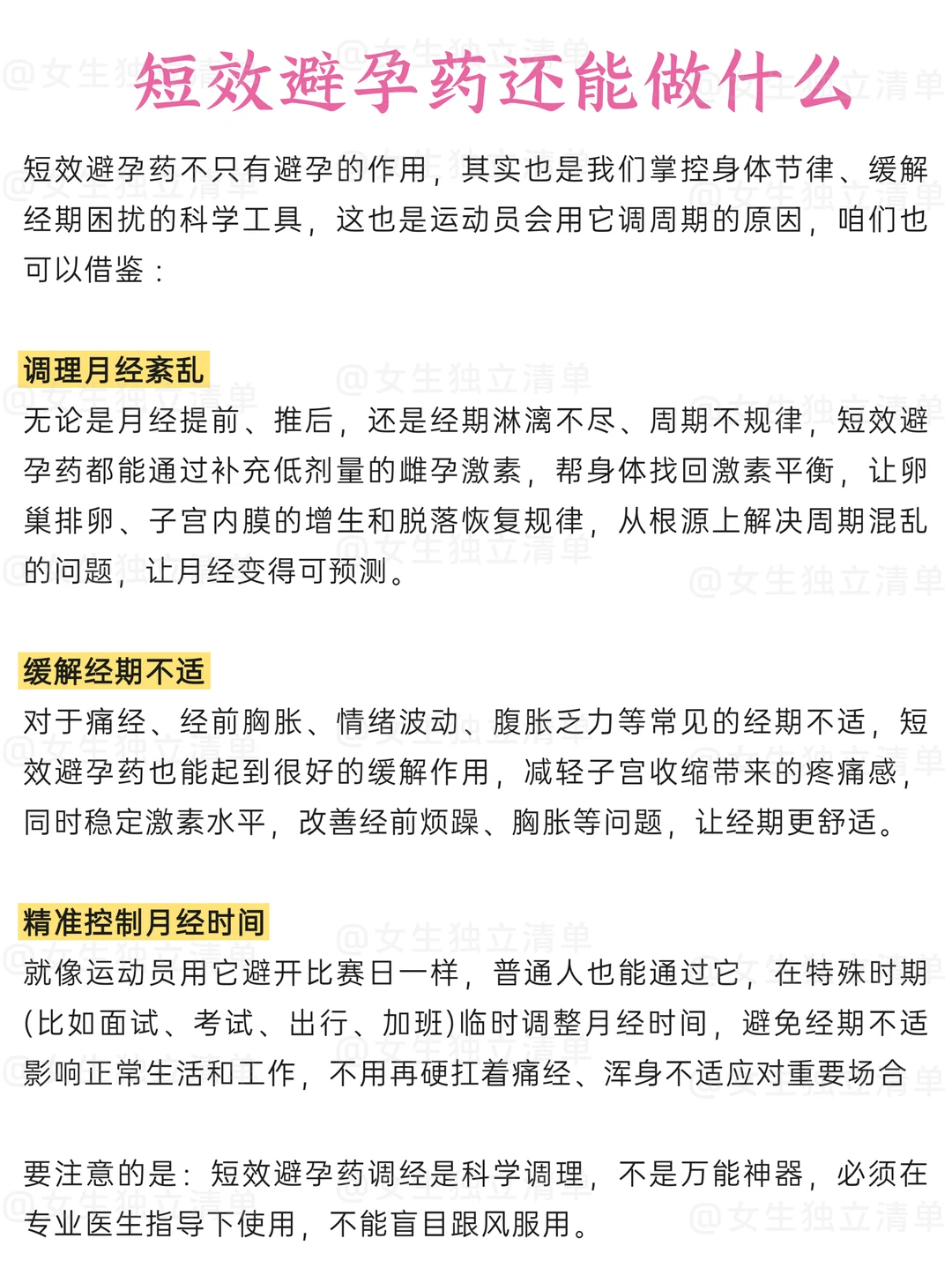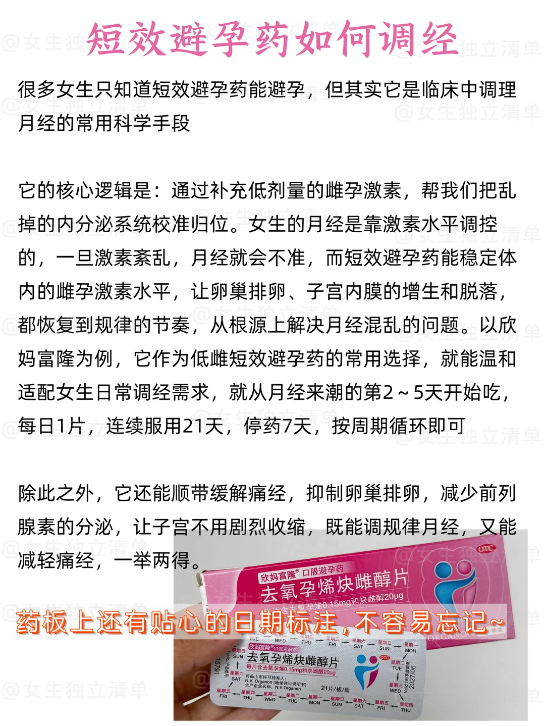 👉🏻换句话说,避孕药并不是只有“避孕”一种用法,它也可以成为理解和掌控身体节律的小工具(必须要在专业建议下)。如果大白让你用避孕药调经也千万别吓到,它只是一种科学的选择。