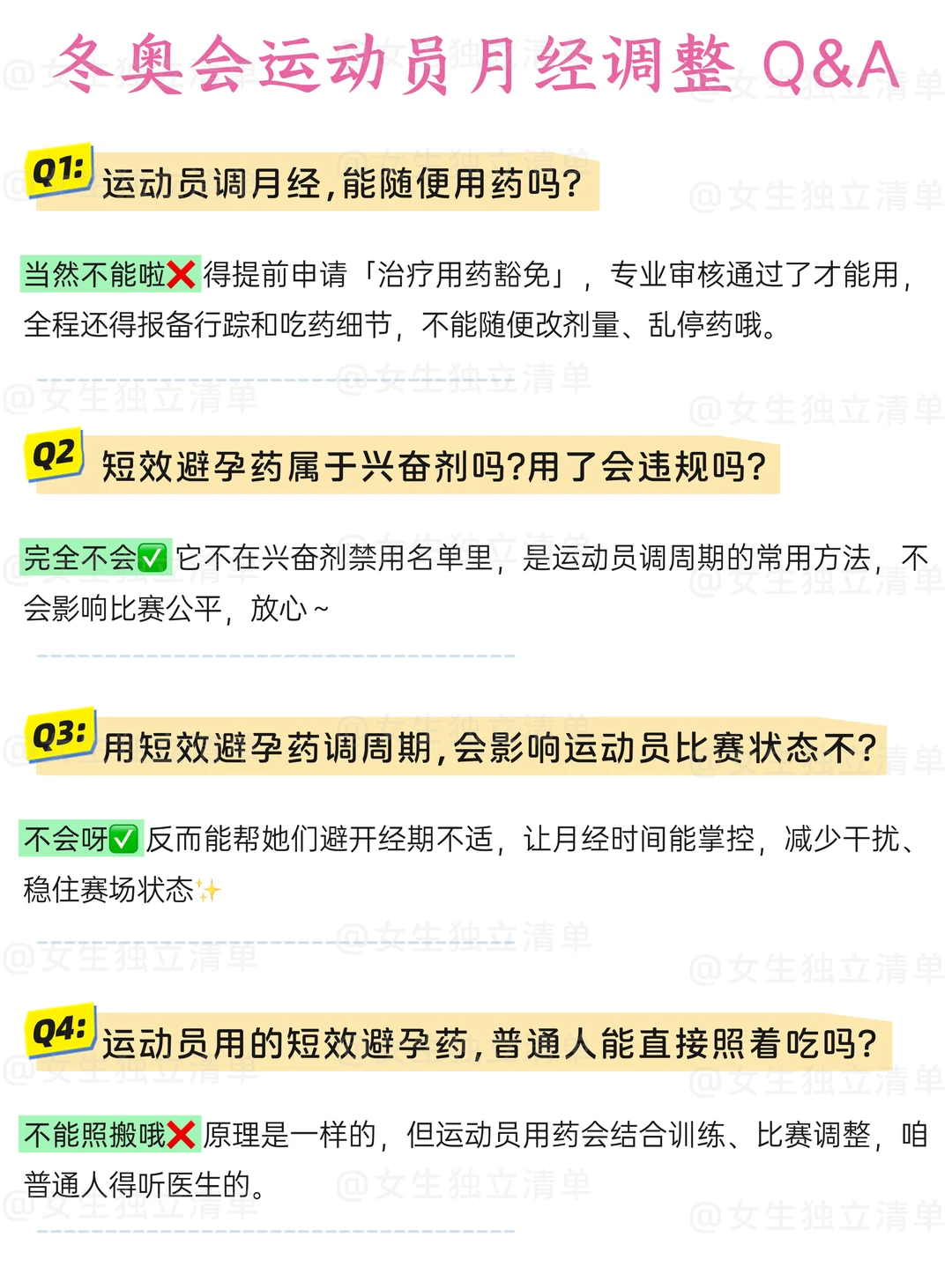 👉🏻很多人疑惑:运动员能使用药物调节周期吗?答案是——可以,但有严格规范