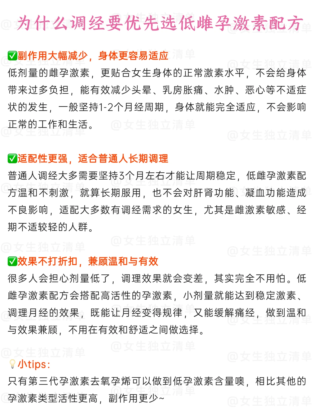 听到调理身体,很多人就下意识觉得会给身体增加负担,其实选对温和的低剂量方案很重要,像普通人调经普遍需要3个月,✅可以选低雌孕激素的配方——减少头晕、胸涨的副作用,更好适应。低雌孕搭配的选择中,OTC的原研更靠谱,比如欣妈富隆。