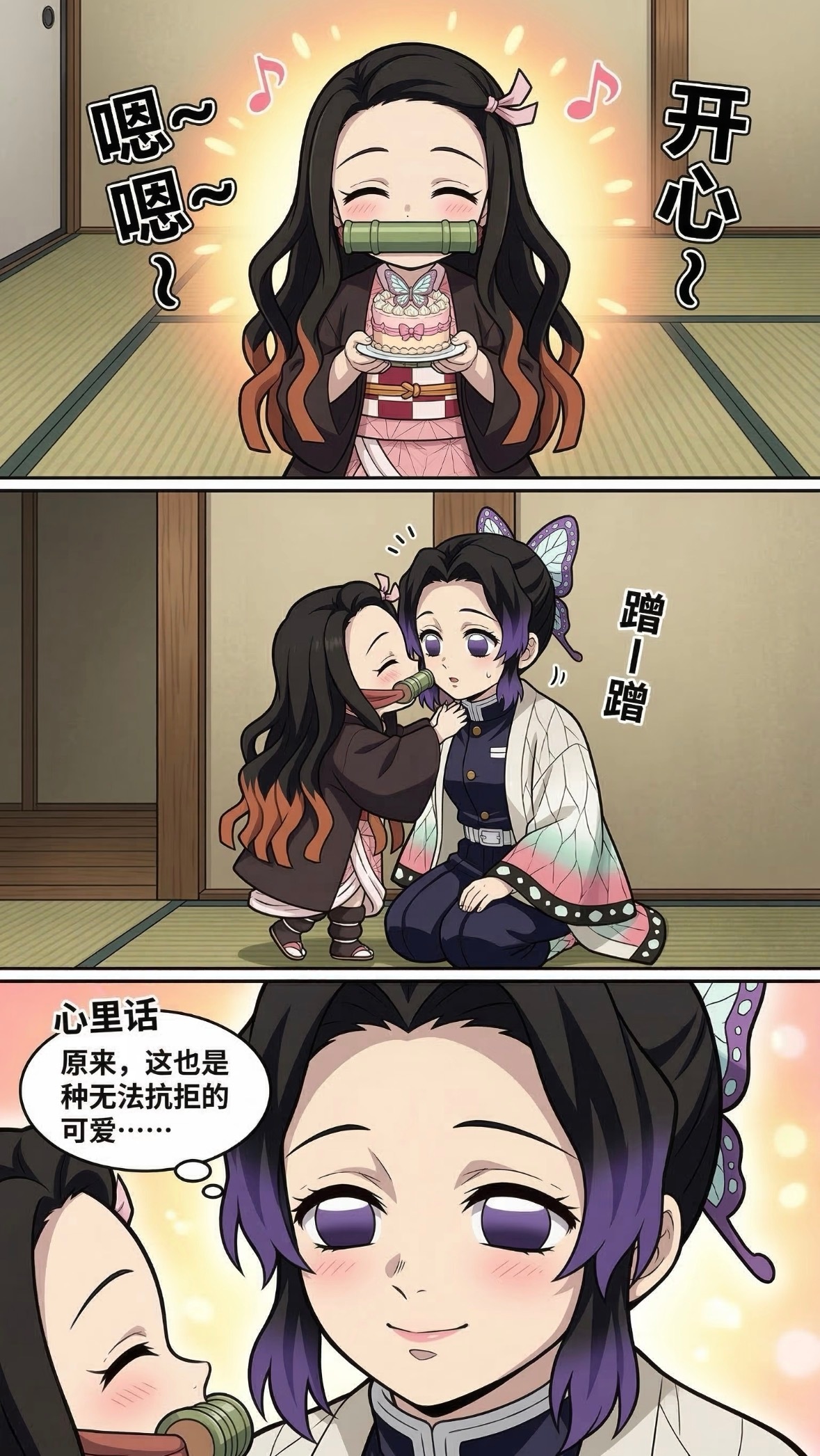 当满级大佬被迫带娃……蝴蝶忍:毁灭吧祢豆子被托付给蝴蝶忍的一天~使出浑身解数哄孩子的蝴蝶忍, 没想到小孩子就只要一个小蛋糕就行啦!何苦给孩子讲什么《解刨术》呢啊?!🦋动漫点评团海外动漫名场面鬼灭之刃