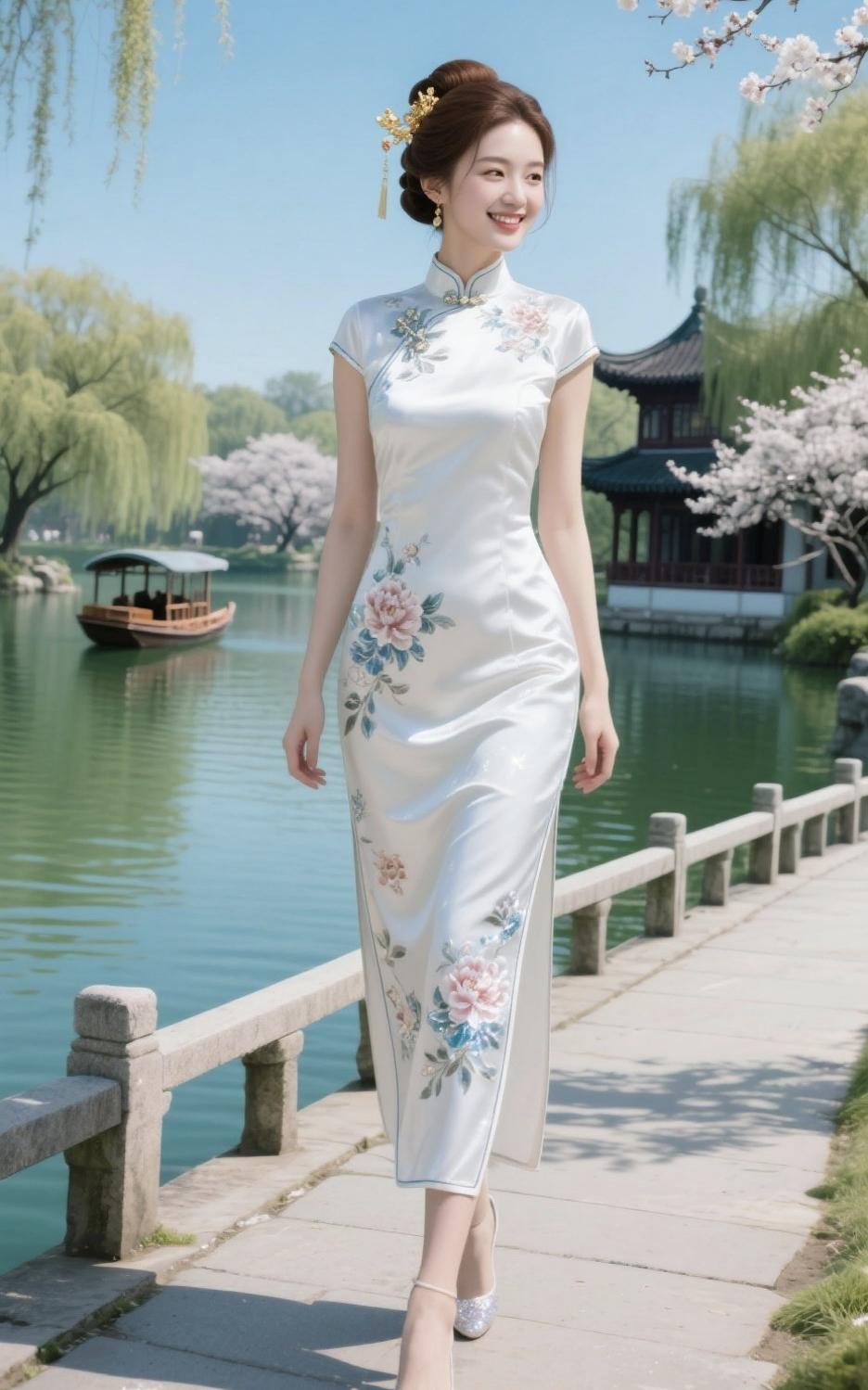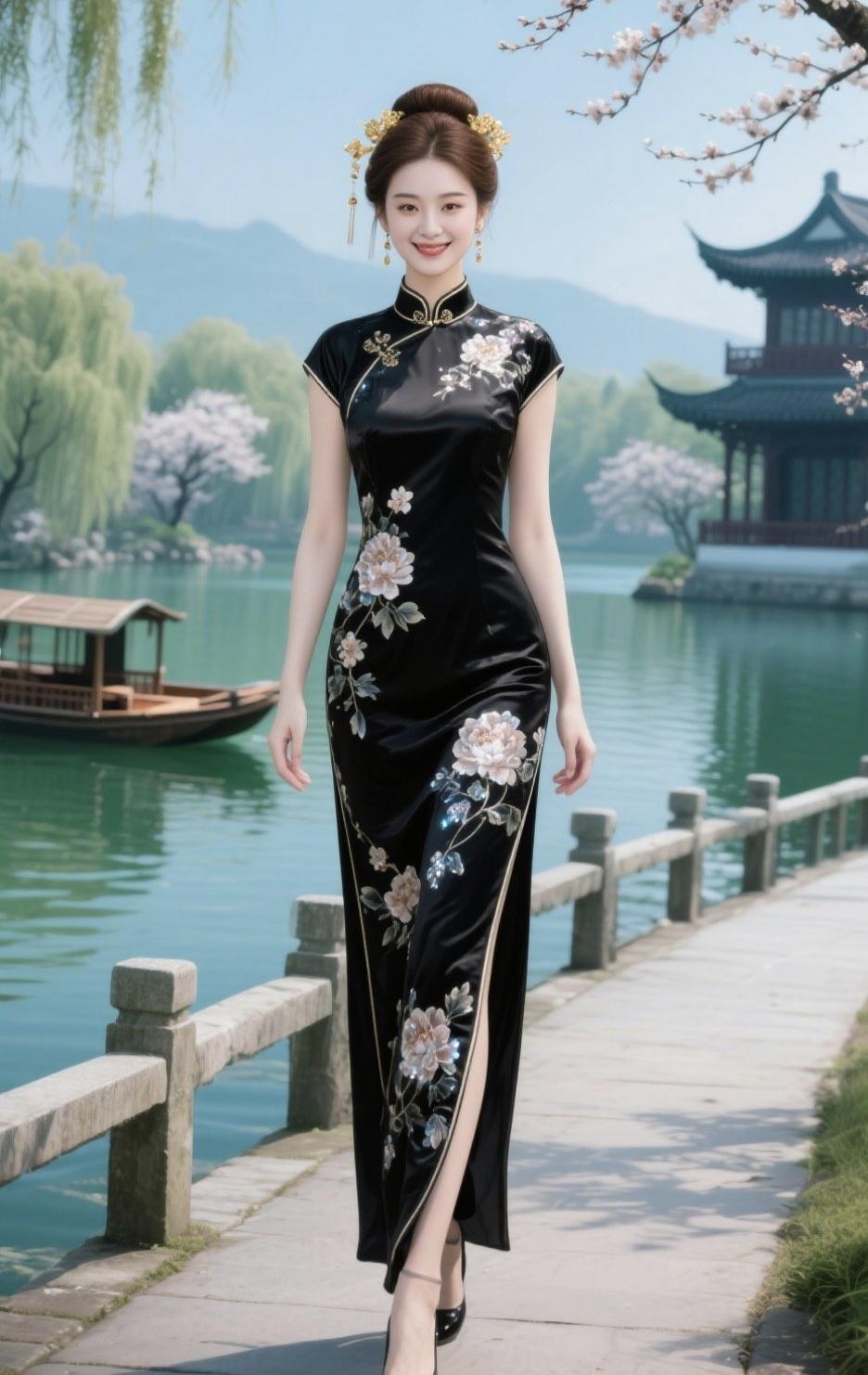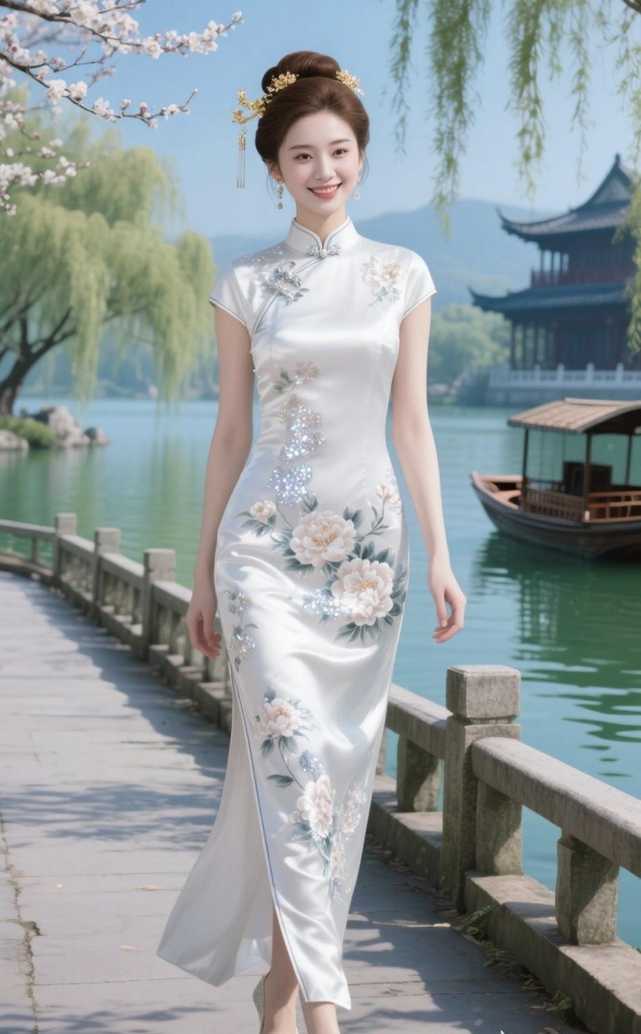 《旗袍里的温柔与锋芒》 针脚藏尽岁月长 一领斜襟,绾起月光 盘扣轻系,不慌不忙 是江南烟雨,落在肩上 裙摆轻扬,步步生香 柔得像春水,漫过时光 眉眼低垂,温婉模样 一低头,便醉了人间万象 可风骨,藏在立领之上 不卑不亢,自有端庄 步步从容,不倚不靠 骨子里的韧,不露锋芒 温柔是皮囊,锋芒是骨相 一袭旗袍,一身清芳 不与繁花争短长 只做自己,落落大方 江南风旗袍照 国风范中式旗袍 江南旗袍照 旗袍复古照 东方旗袍高定 甜风旗袍图 江南旗袍伞照