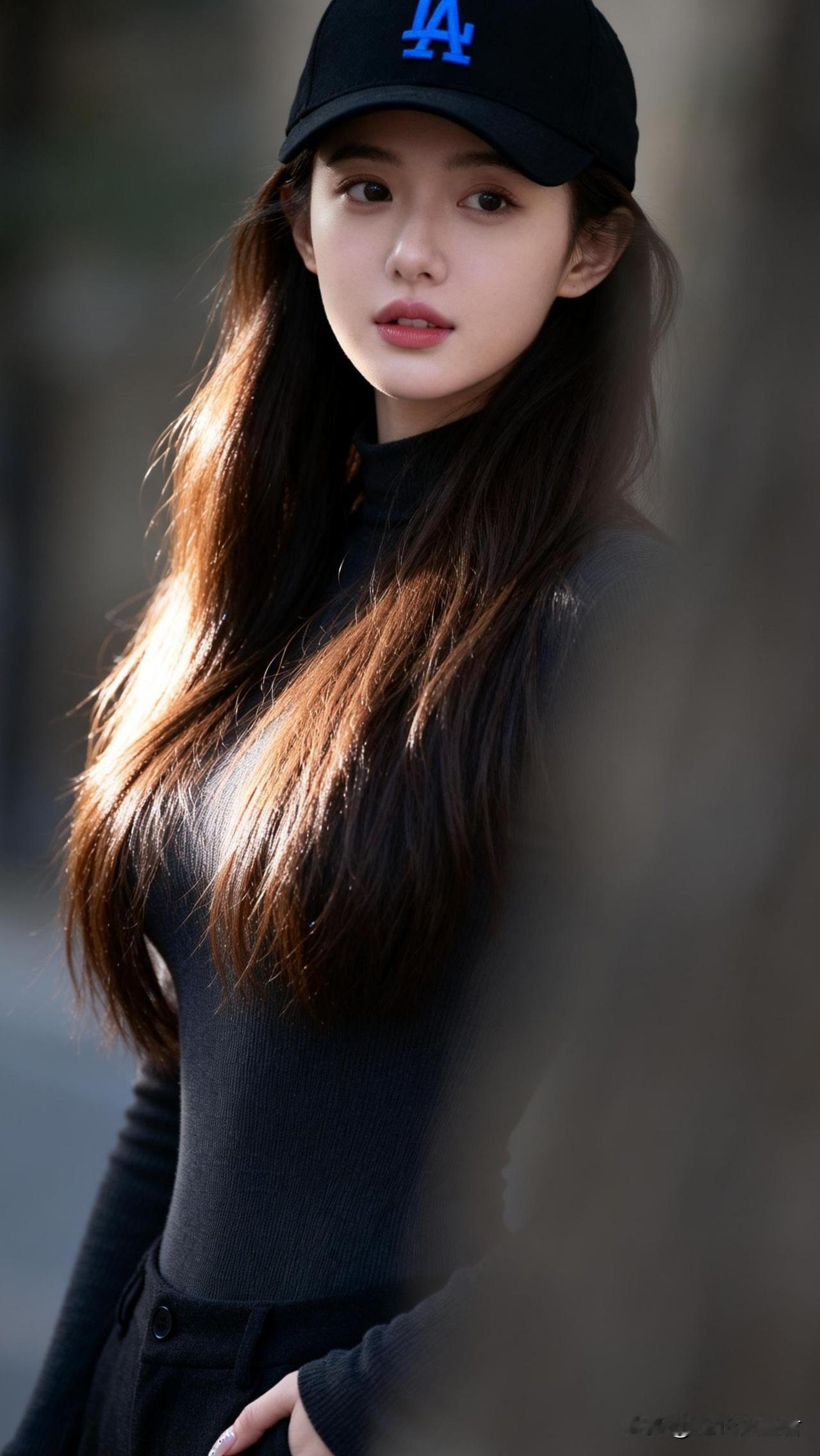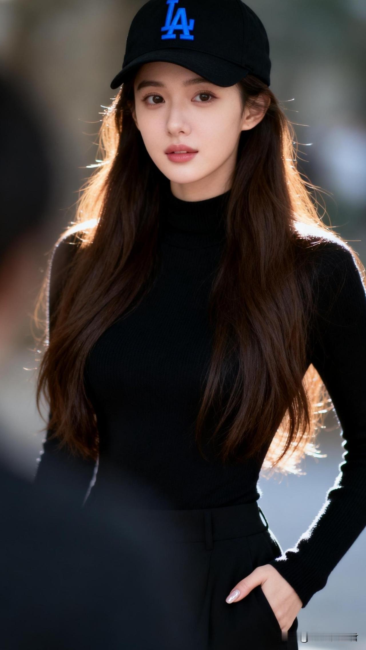 都市街头穿搭指南,简约黑色高领衫搭配LA棒球帽,时尚又帅气!