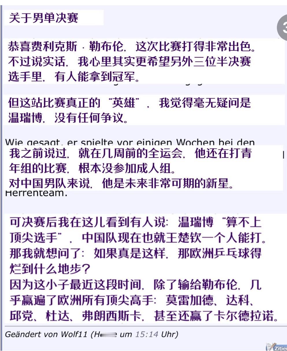 德国球迷关于重庆冠军赛温瑞博与蒯曼夺得亚军的一些看法! 3月15日,2026重庆