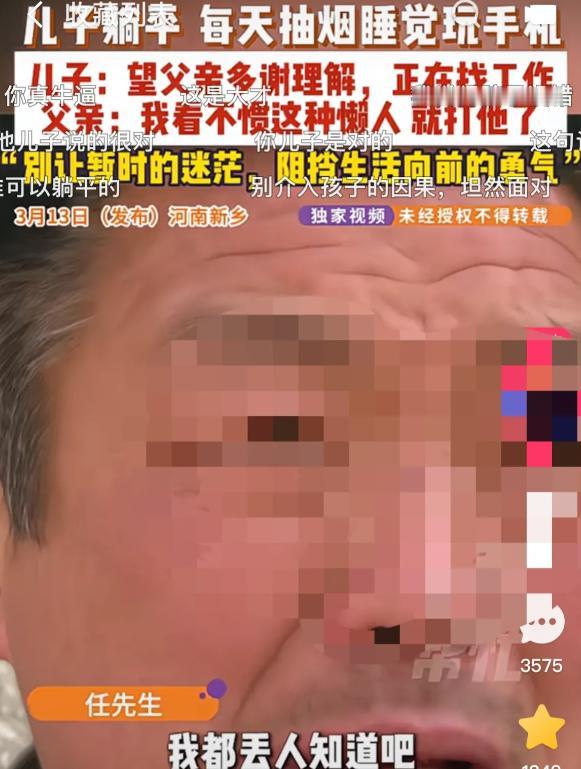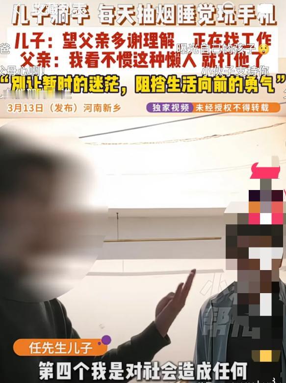 河南新乡,一男子大学毕业不去找工作,整日在家抽烟睡觉玩手机。父亲看不下去了,就说了儿子两句。谁知儿子不听,还认为父亲不理解他,父子俩也闹了矛盾。父亲没办法,找来记者协调。谁知刚一见面,男子甩出“三连问”,把记者也给整懵了。   这件事乍一看,很多人会第一时间指责年轻人好吃懒做、啃老不孝,觉得他辜负了父亲的养育之恩,可静下心来细看,这对父子的矛盾,从来不是简单的“懒”与“管”的冲突,而是两代人对生活、对未来的认知,彻底走到了岔路口。   这个25岁的小伙,大学毕业已经晃过了两年时光,没有朝九晚五的工作,没有社交圈子,整日把自己关在屋子里,靠着抽烟、玩手机打发日子,房间里堆满杂物,日子过得浑浑噩噩,在外人眼里,这就是典型的“躺平摆烂”。   他的父亲是个实打实的体力劳动者,一辈子在工地打拼,没什么文化,这辈子最大的念想就是供儿子读完大学,让孩子摆脱靠力气吃饭的苦日子。   在父辈的观念里,读书是唯一的出路,拿到毕业证就等于握住了体面生活的敲门砖,为了这个念想,父亲拼尽全力,哪怕自己吃苦受累,也满足儿子的求学需求,满心等着儿子出人头地。   可这份沉甸甸的期待,最终却落了空,看着儿子整日宅家颓废,父亲的焦虑和失望越积越多,几句劝说变成了争执,父子间的隔阂越来越深,无奈之下才想着找记者帮忙调解。   而年轻人的三连问,看似是抬杠,实则是他对当下现实的直白吐槽,更是戳中了很多普通年轻人的无奈。   他没有撒泼闹事,只是冷静地质问,自己宅家没触犯法律,不社交、不消费也没妨碍他人,面对薪资微薄、付出与回报不成正比的工作,放弃奔波似乎也成了一种选择。   这几句反问,没有华丽的辞藻,却精准道出了当代部分年轻人的困境:学历不再是稳赢的筹码,奋斗的收益盖不住生存的成本,拼命工作换来的收入,难以支撑体面的生活,久而久之,便失去了向外闯荡的动力。   父亲看不懂儿子的妥协,觉得他是在糟蹋人生、逃避责任;儿子也不被父亲理解,觉得父辈的执念早已跟不上现实的节奏。   这不是某一个家庭的悲剧,而是当下很多普通家庭的缩影,教育投入与现实回报的落差、代际观念的碰撞、社会竞争的压力,全都压在了这个普通家庭身上,让父子俩都陷入了无解的困境。   年轻人的躺平不是天生的惰性,更像是一种无力反抗后的自我保护;父亲的指责也不是苛刻,而是半辈子信仰被现实击碎后的慌乱。   大家对此怎么看?欢迎评论区留下您的观点!