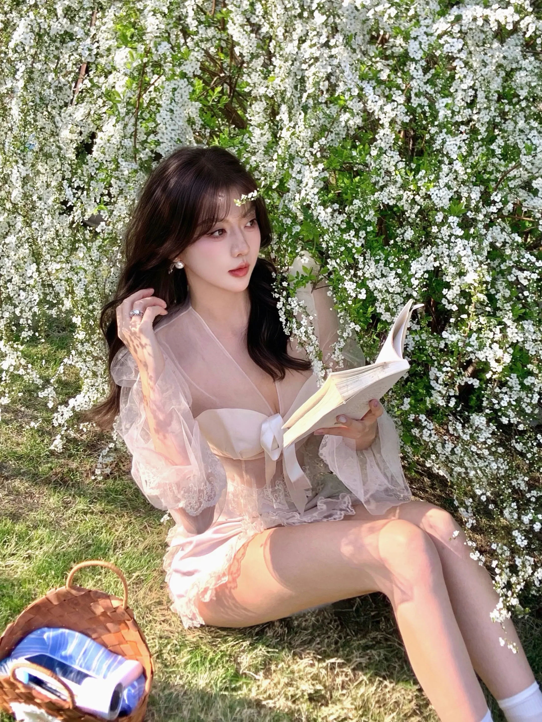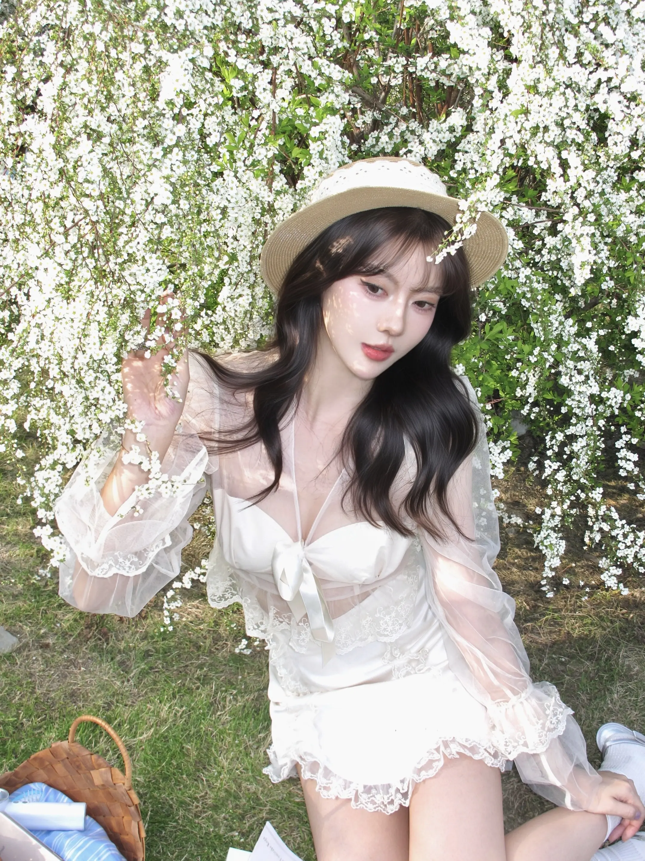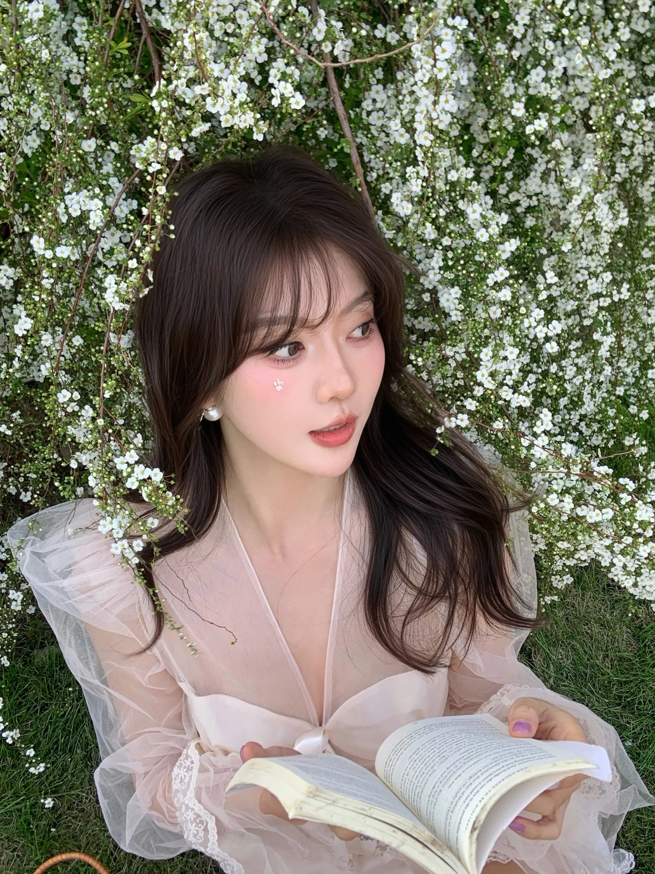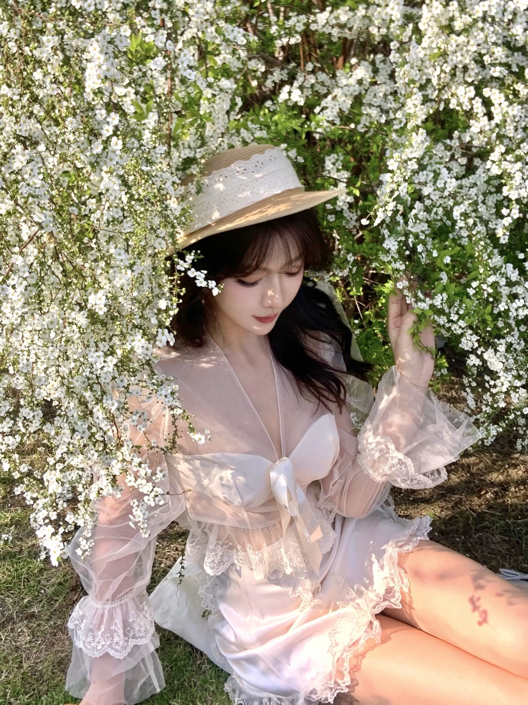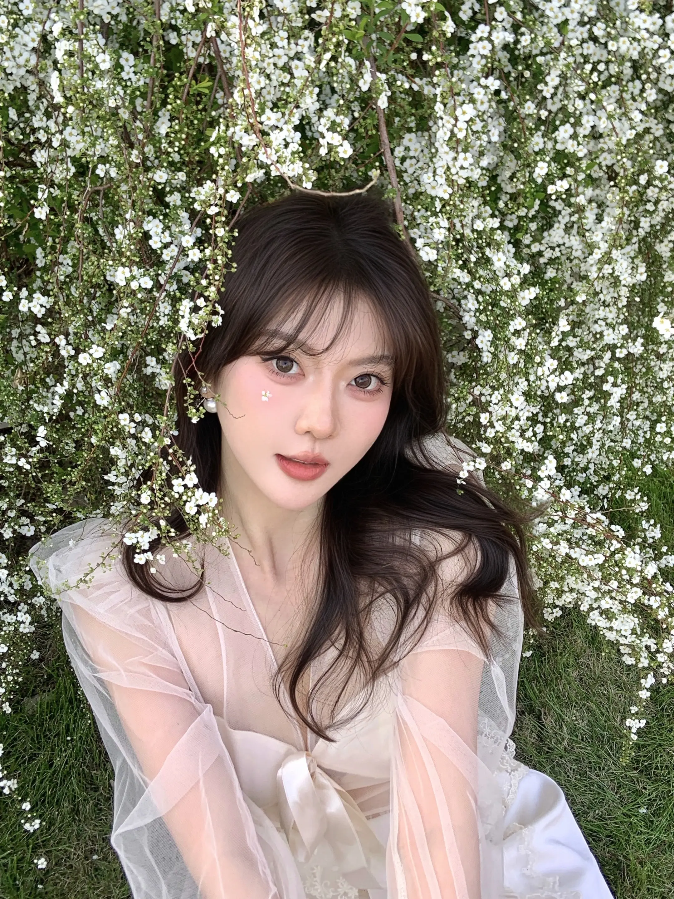 轮到我拍花花啦💐。薄纱上衣自带氛围感 超温油der 和雪柳合照啦