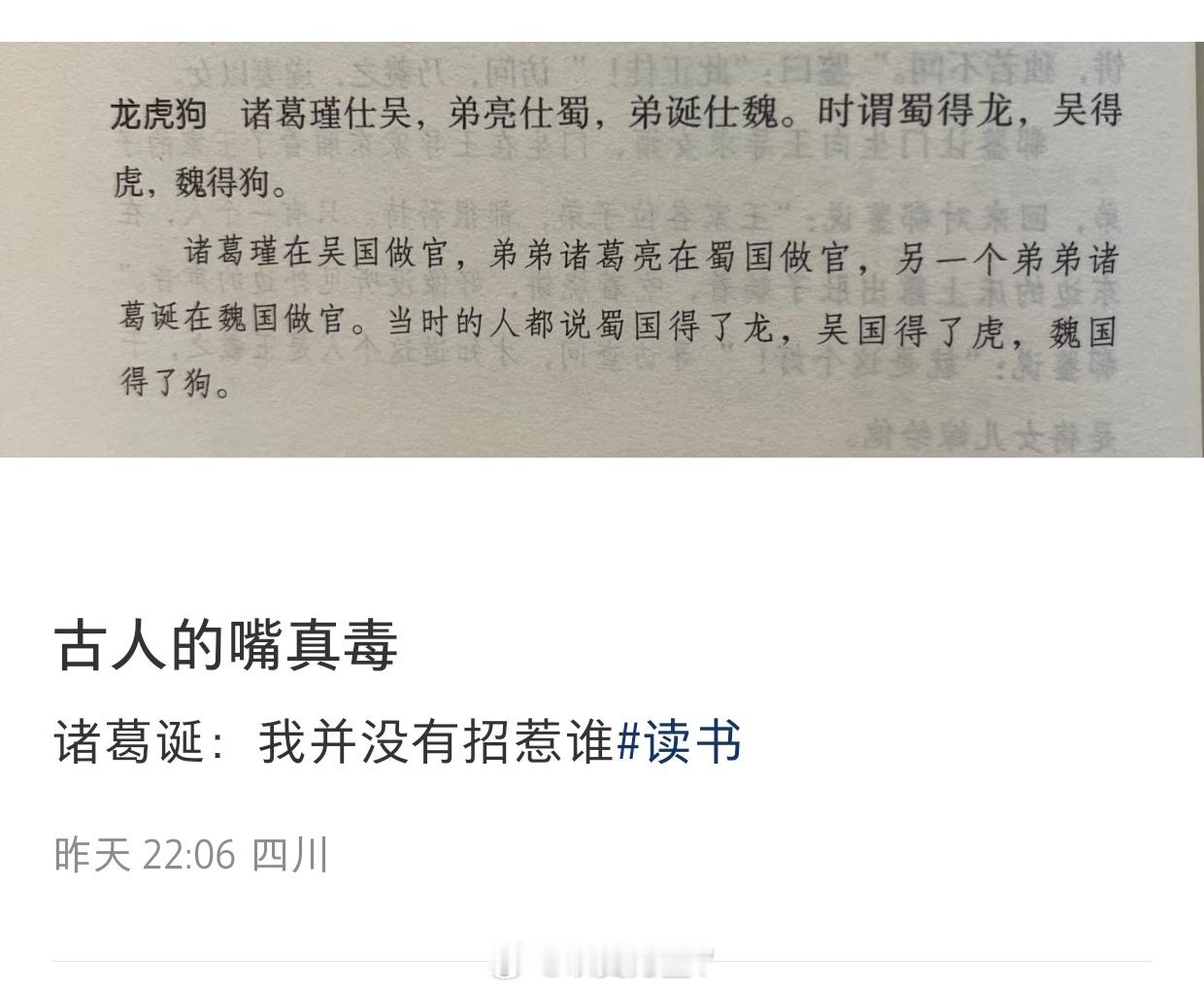 三国时期有人骂诸葛诞是狗?假的!看到有人说三国时期诸葛三兄弟之中的诸葛诞被评论为