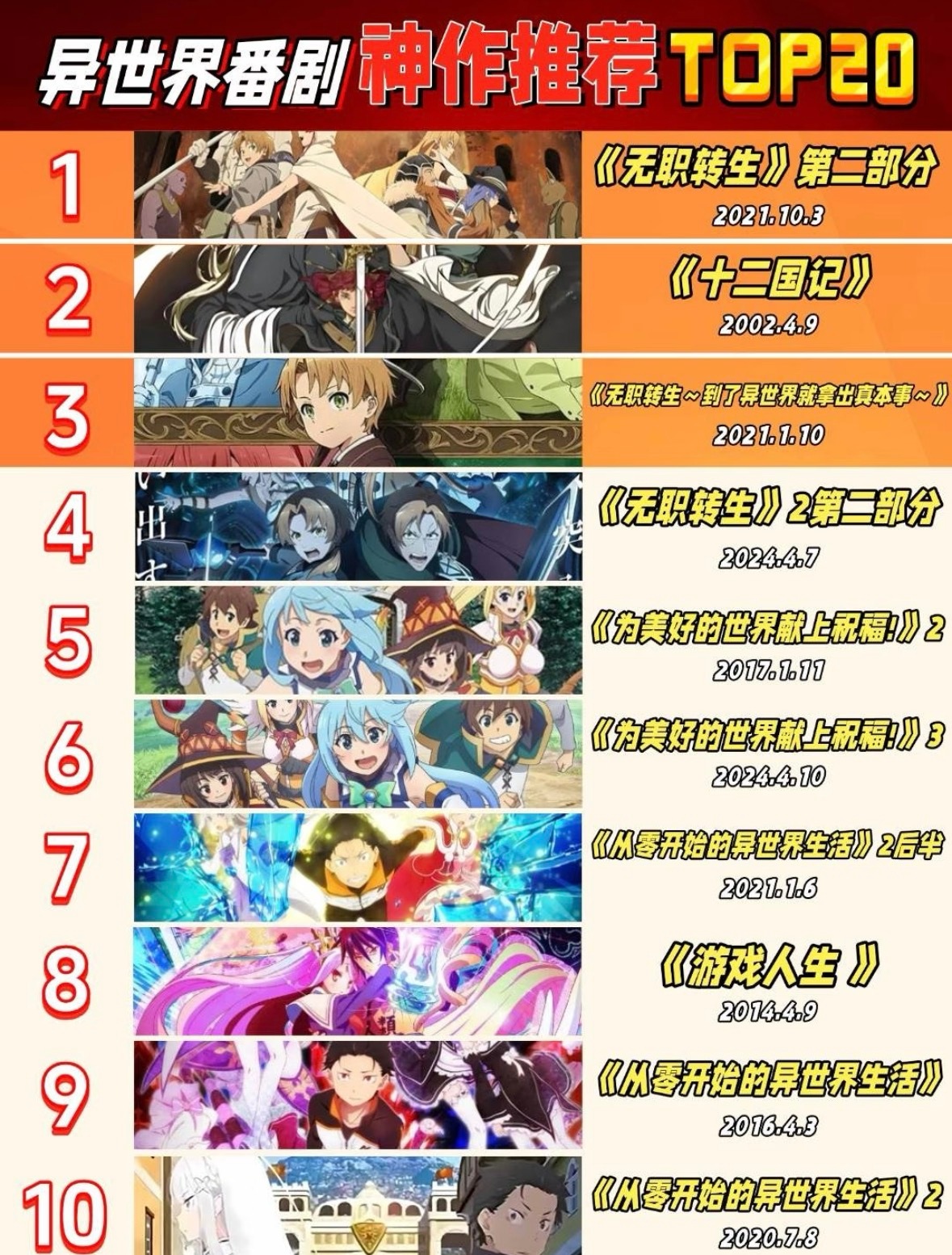 异世界番剧 TOP20 神作,剧荒的宝子看过来!给大家标了番名以及上映时间,你看
