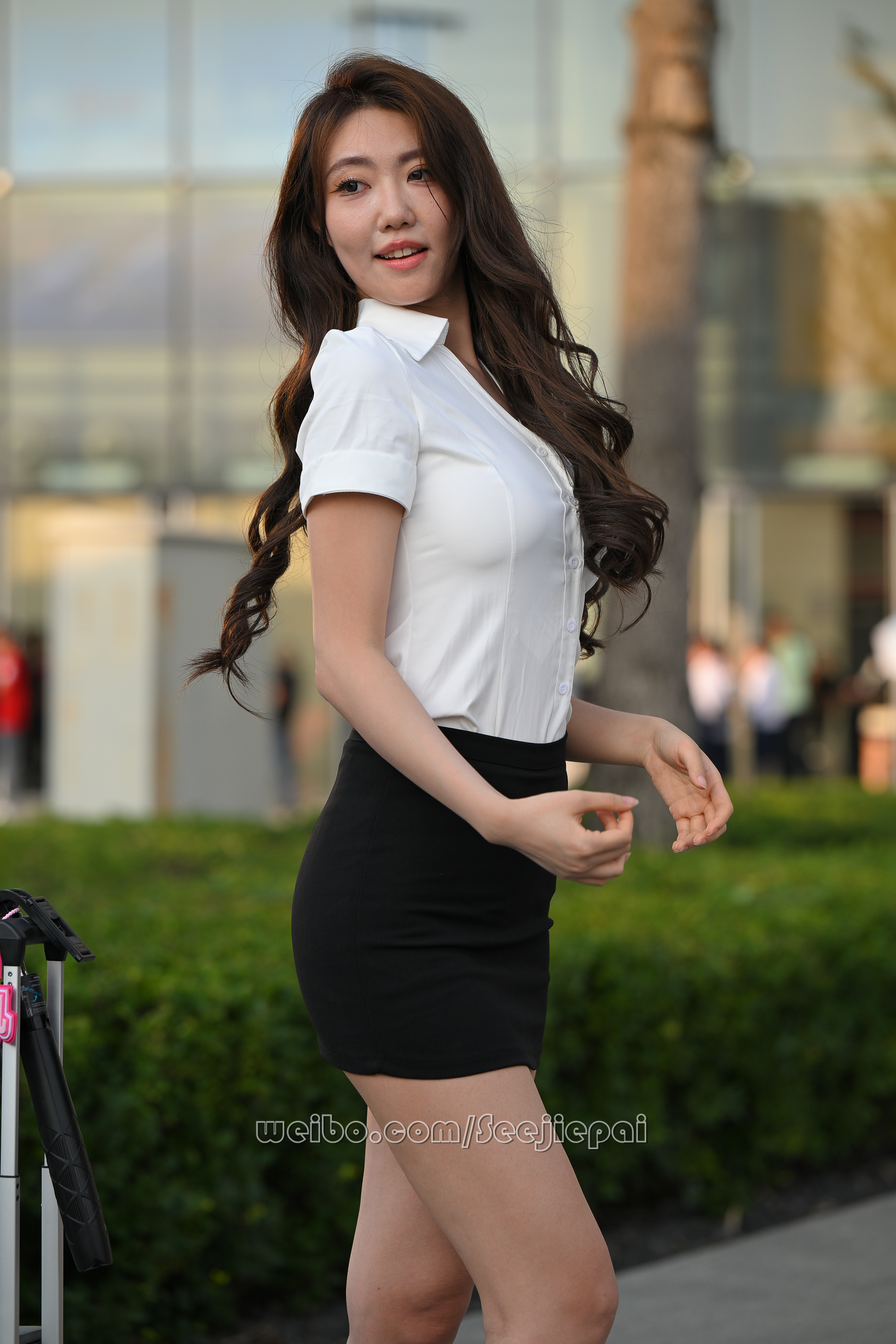 衬衫黑裙通勤风~~