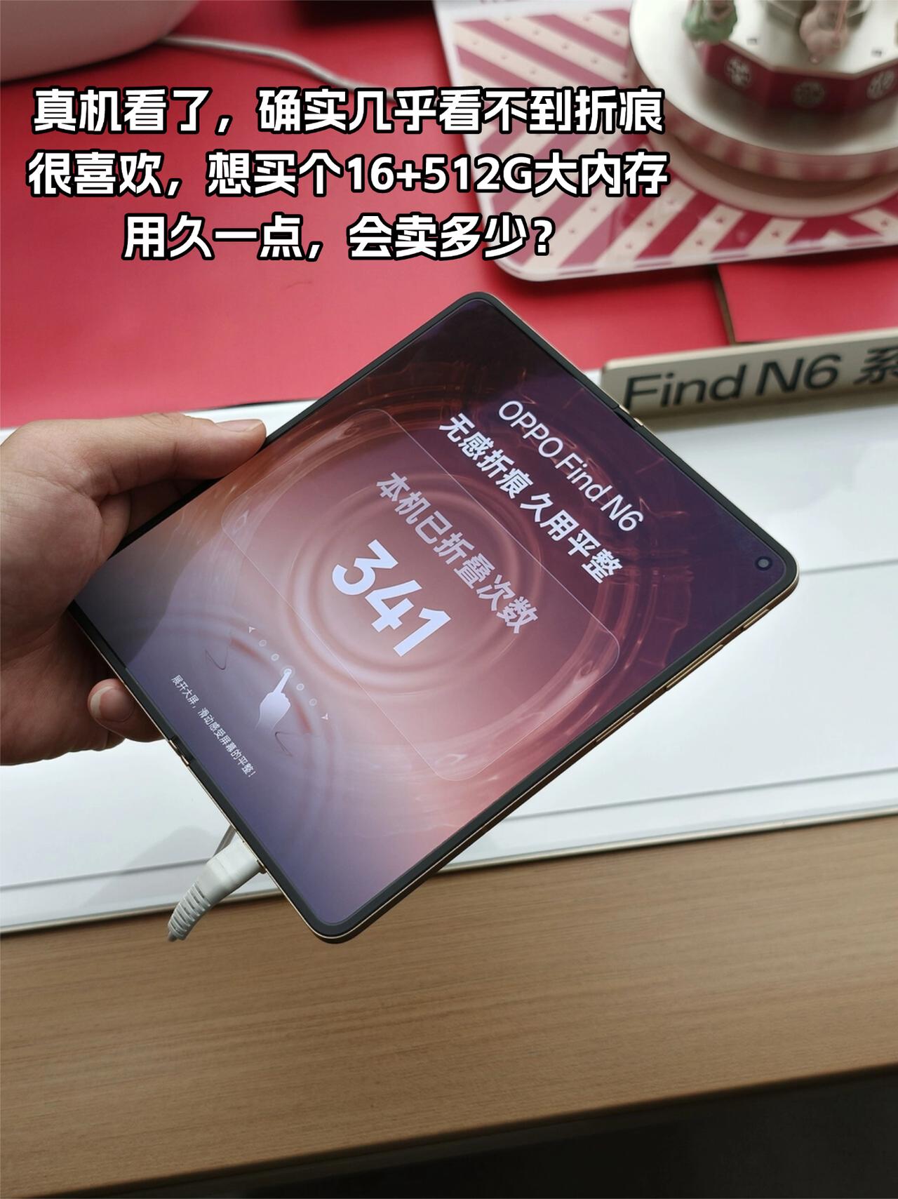折叠屏涨价两千?OPPO Find N6到底会卖多少? 周末专门跑去线下店摸了OPPO Find N6,之前看爆料就说折痕控制很顶,上手那一刻还是被惊到,亮屏几乎看不见折痕,手指滑过去也几乎无感,完全不像传统折叠屏,日常用应该很舒服,店里还有折叠活动,好多折叠了300多次了依旧平整,耐用性真的稳。 作为老iPhone用户,最惊喜的是它居然和苹果互通!听店员说现在OPPO和苹果手机放一起,照片、文件一碰就能互传,甚至来电、通知还能同步,而且折叠屏登录的是平板微信,也就是能获得微信双在线,这就很利好双持党了,太适合我这种不想换生态的人。 听数码大V说现在预定超火爆,但现在手机都在涨价,估计Find N6会卖挺贵的,他建议大家冲16+512G,性价比最高、用着最省心,我也打算订这个版本。 其他2亿像素哈苏四摄和AI手写笔带来的影像和系统功能都有不小升级,整体看下来没什么短板,完全符合我的预期。明天就是发布会了,坐等了! OPPOFindN6 FindN6无感折痕OPPO全球最平整折叠OPPOFindN6 手机数码 分享 手机分享