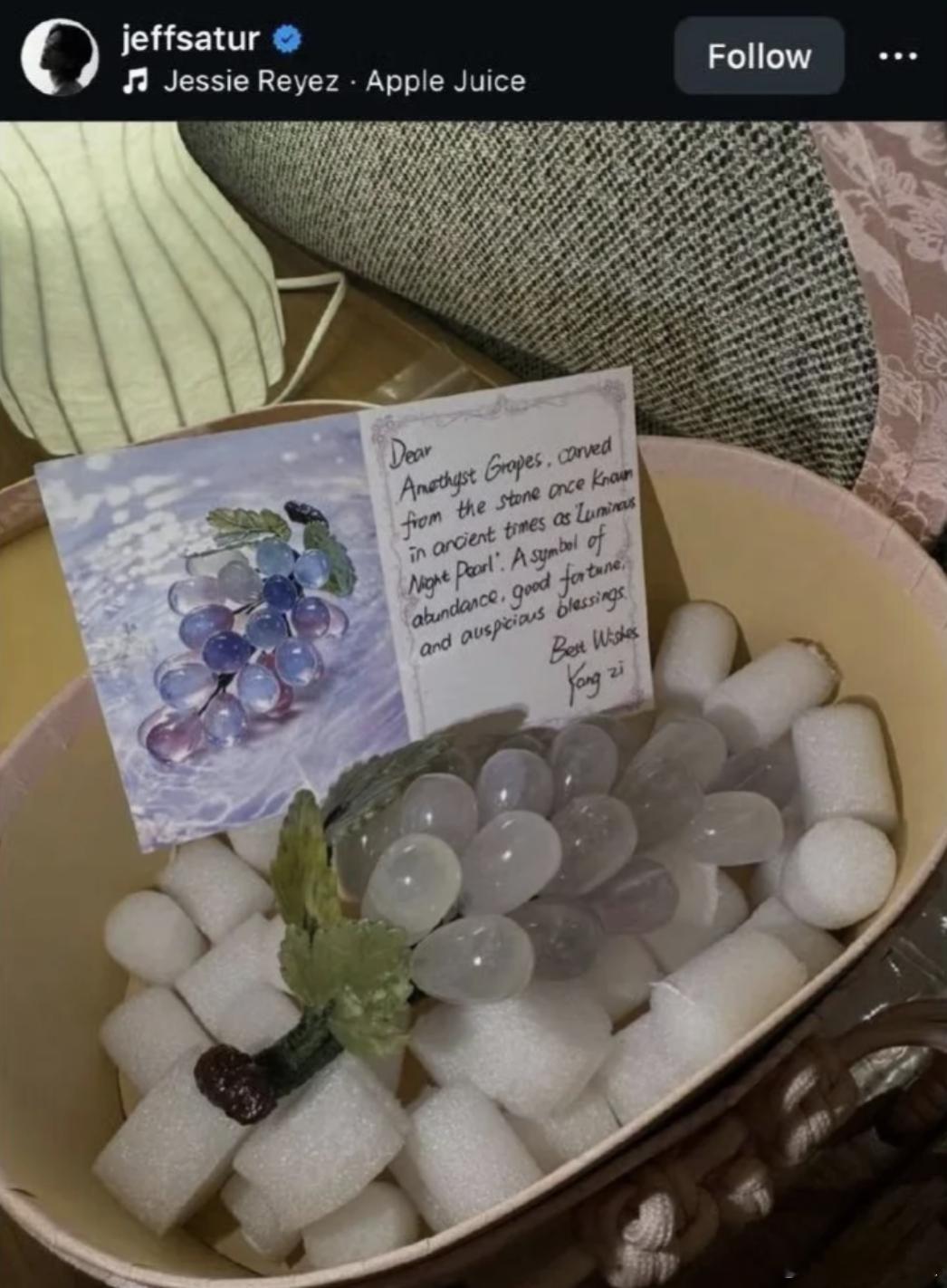 杨紫送给罗杰夫紫玉葡萄杨紫为罗杰夫手写英文礼物卡 杨紫走到哪里都能交到新朋友 和罗杰夫结缘,用心准备了满是心意的礼物,寓意着丰饶好运的紫玉葡萄,还有亲手写下的英文祝福卡,和杨紫当朋友真的太幸福了 杨紫