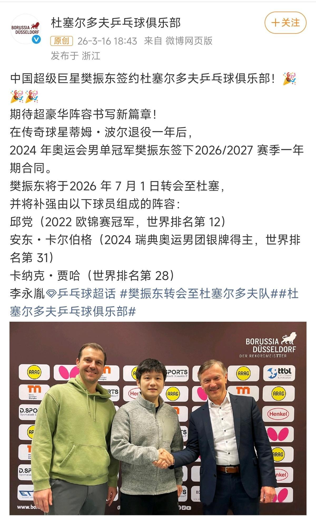 破案了:樊振东加盟杜塞,杜塞主席透露3个原因!杜塞尔多夫俱乐部主席安德烈
