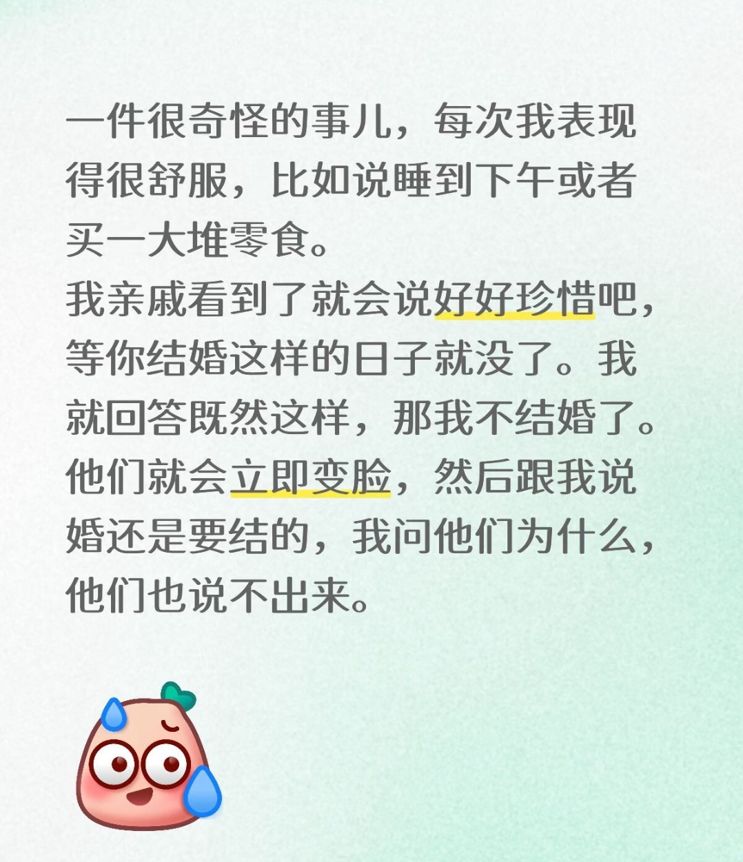 确实很神奇,这些长辈每次都说你结婚以后就没有这个好日子了,但却不能不结婚