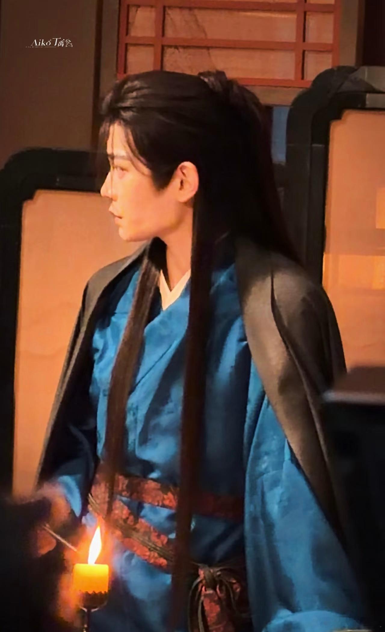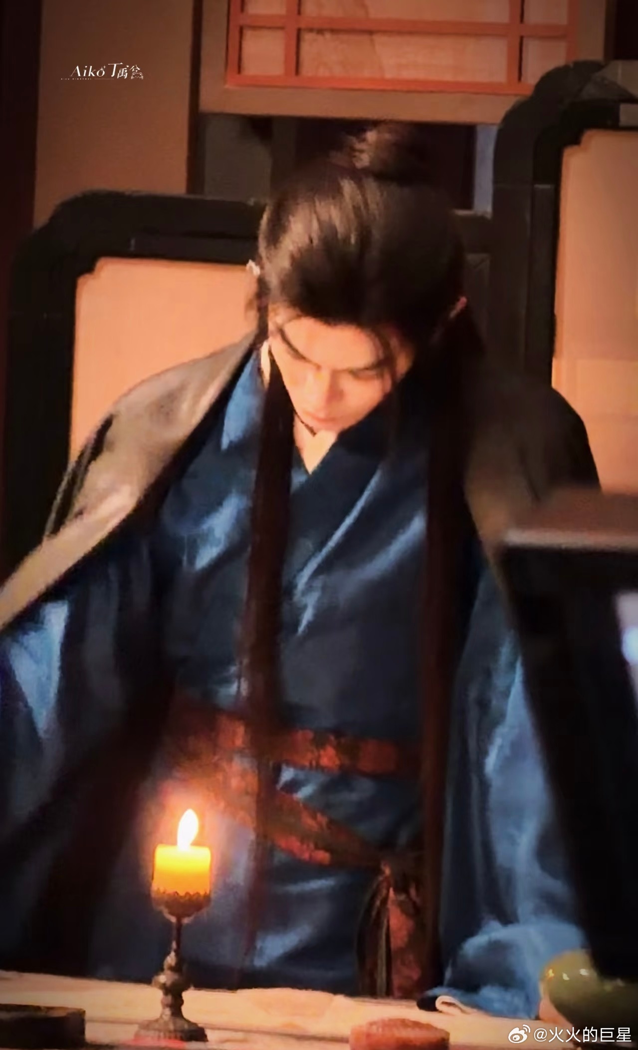 丁禹兮司宫令蓝衣半披发造型丁禹兮司宫令灯下写字路透 这都帅成啥了