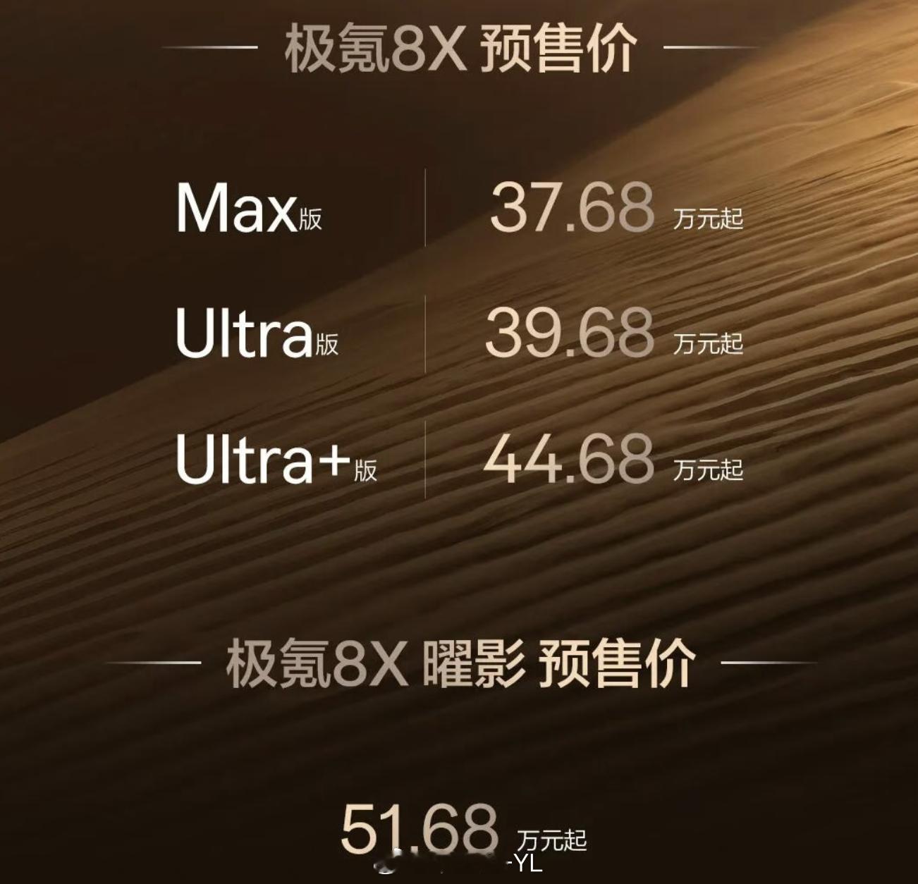 极氪8X预售37.68万起在极氪的9x的成功以后,“杭州湾卡宴”终于来了,极氪8X公布预售价 37.68万起,顶配曜影版 51.68万,围绕新能源性能SUV打造自己的产品。
