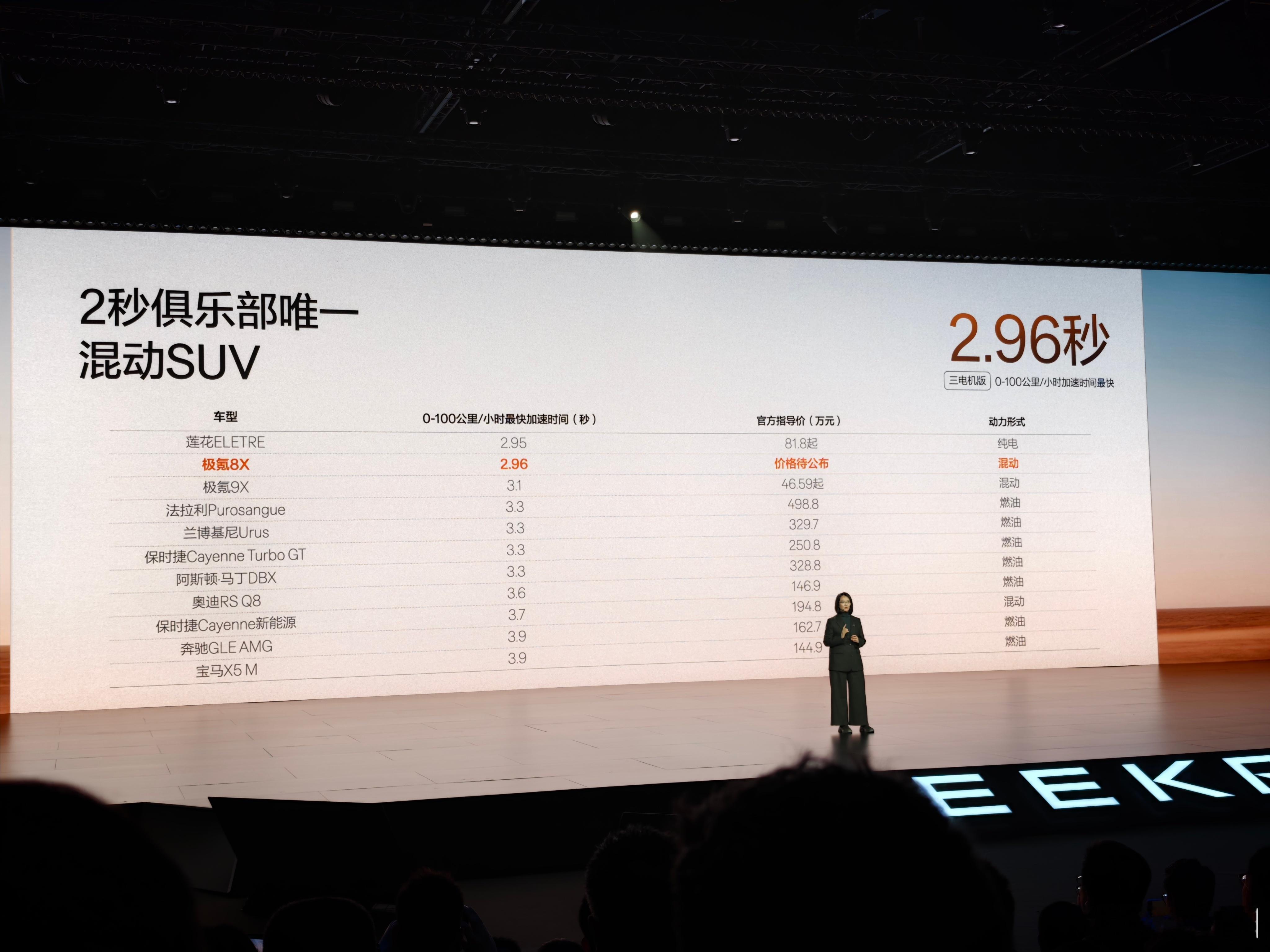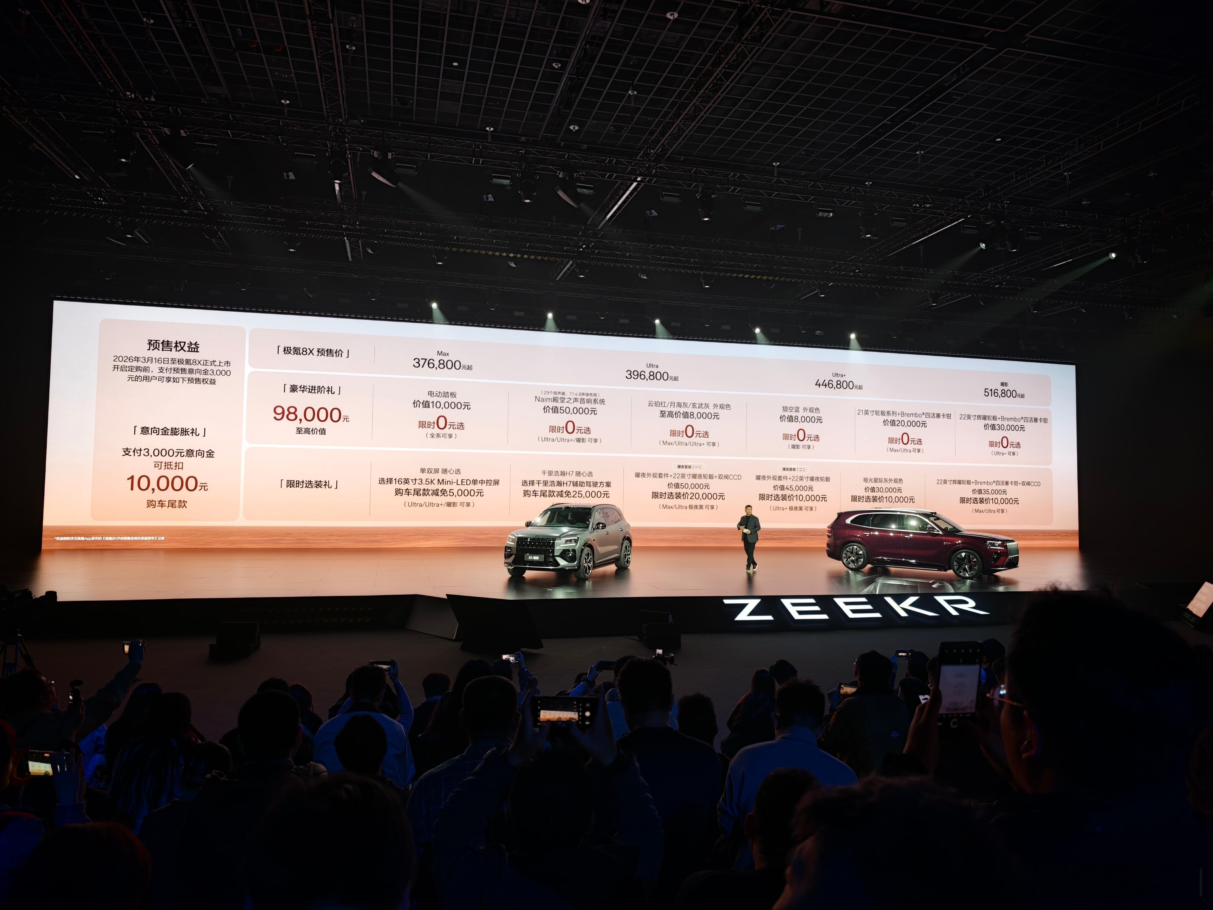 目前各个版本的预售价格已经公布,预售37.68万起,最贵的耀影也就是类似9X的耀黑版要到51.68万,价格比较有自信,证明极氪想主打更加精准的人群去卖这辆车。极氪8X曜影极氪8X 上海·上海张江科学会堂