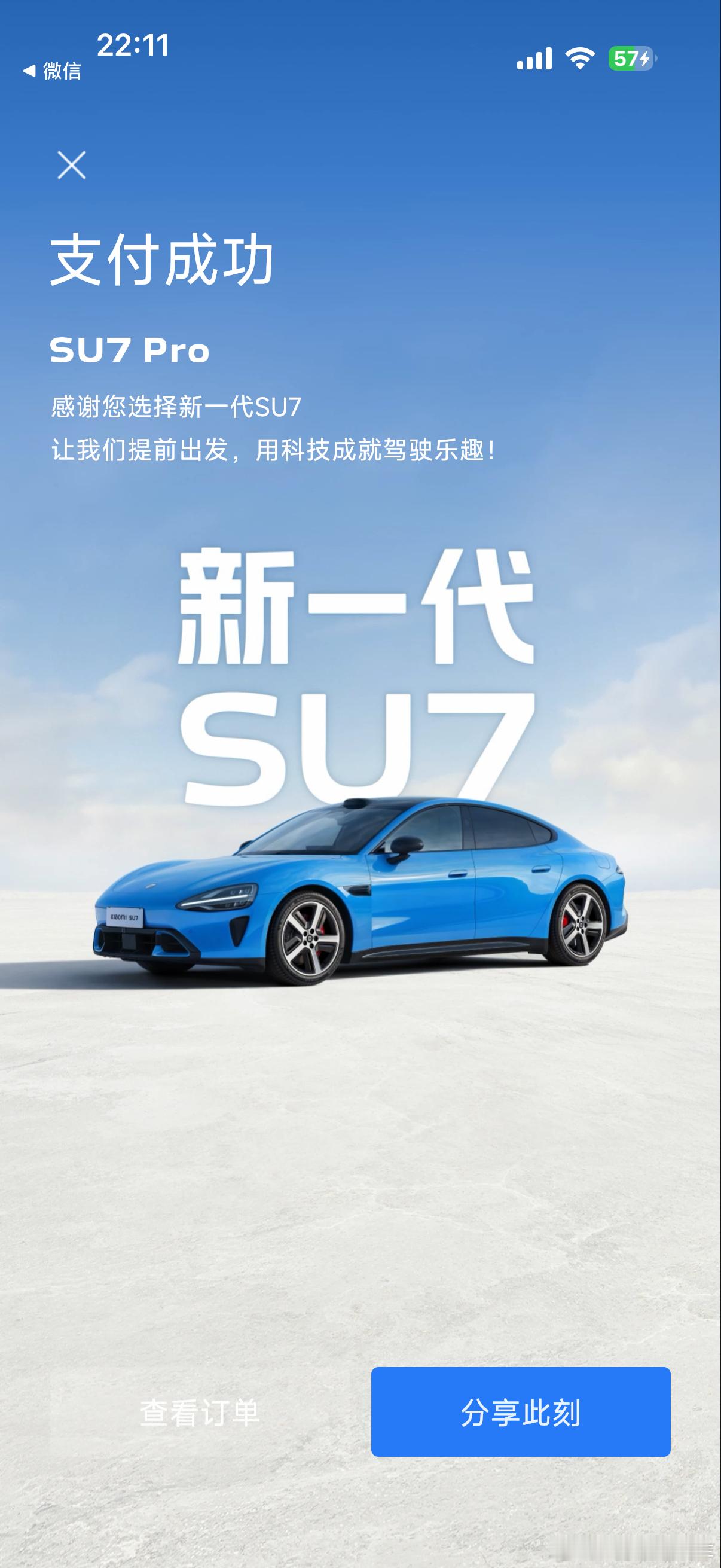已预定小米SU7 Pro版 流金粉+20英寸米型轮毂给我老婆开,望周知。