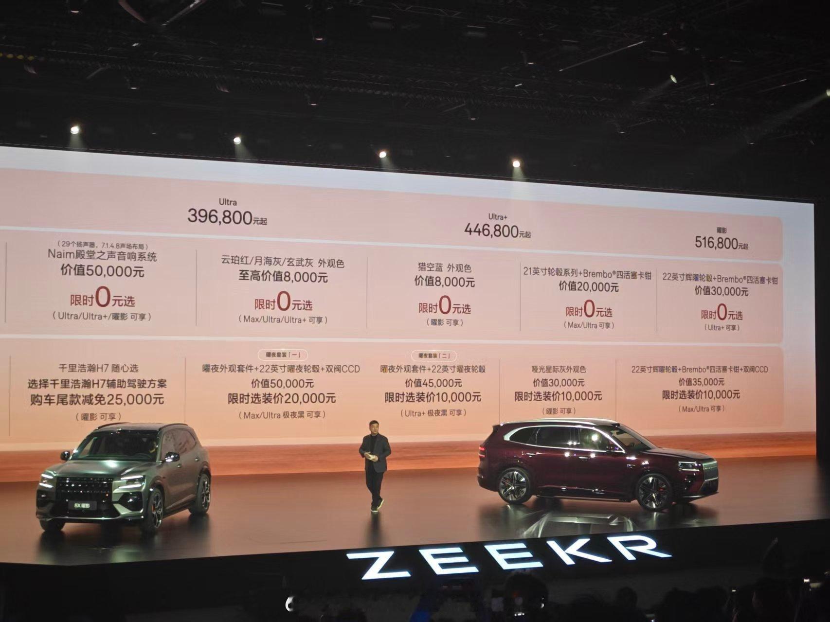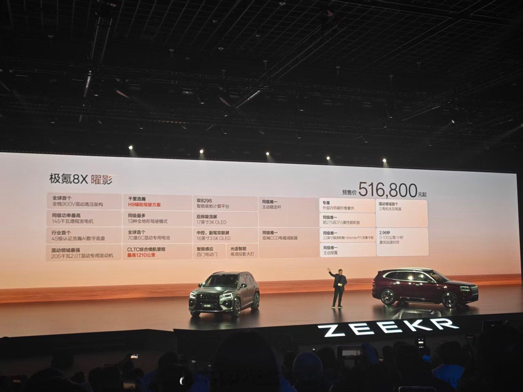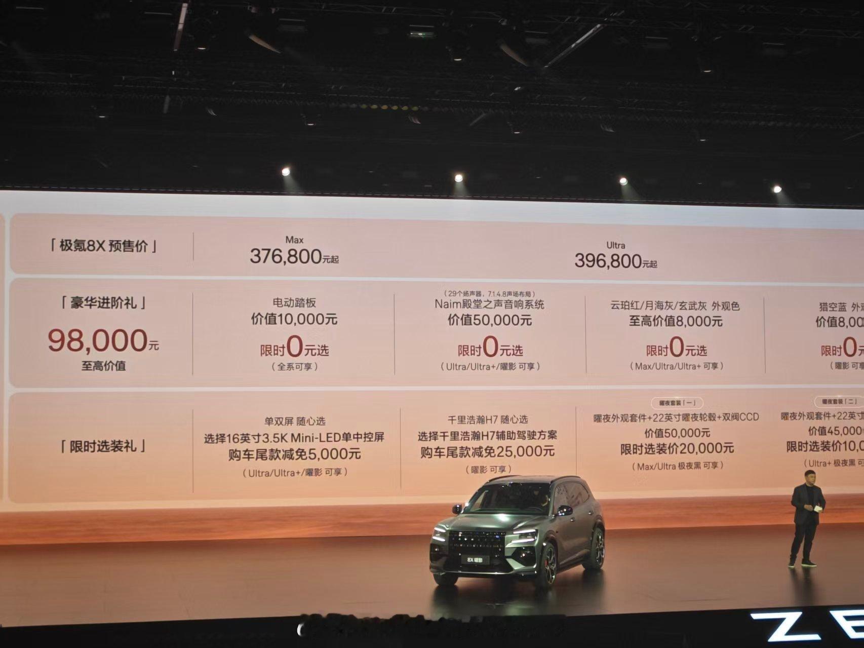 极氪8X 预售价,37.68万元-51.68万元,分四个版本。