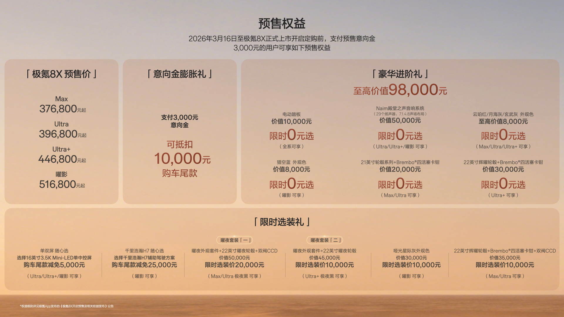 从9系开始,极氪就懂了我们真正想要的——不只是一台代步工具,而是一台能装下生活,也装得下热爱的车、这一次,它不再是传统意义上的家用8系,而是属于我们这代人的「全能理想座驾」。极氪8X预售37.68万起