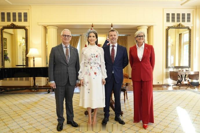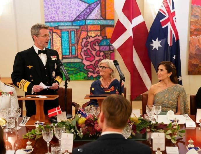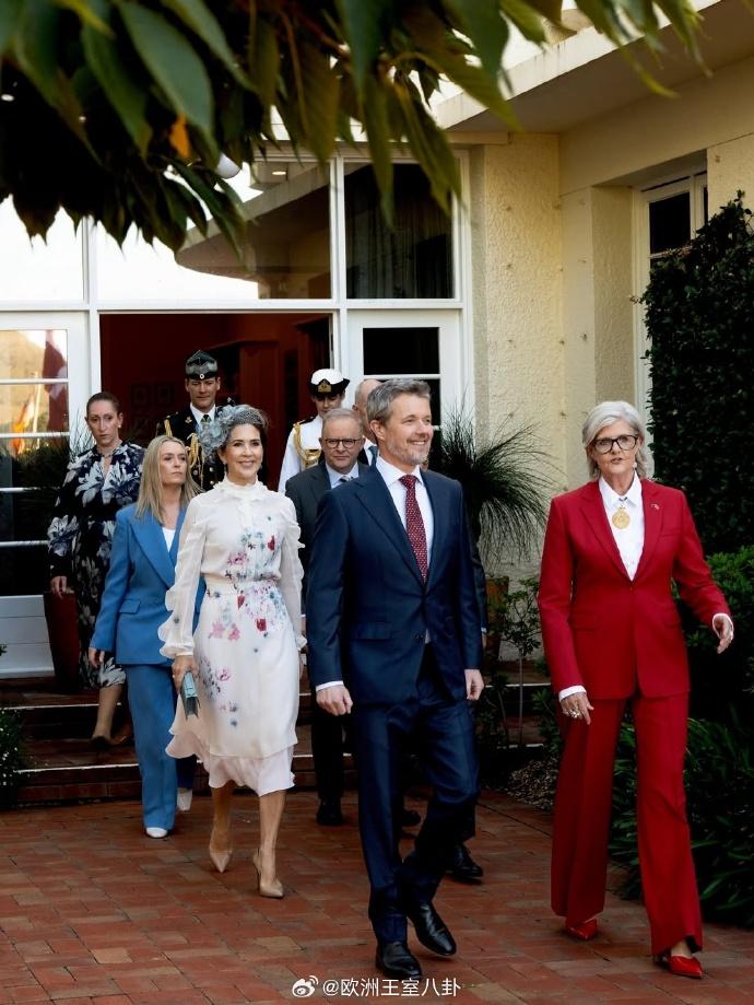 丹麦对澳大利亚为期五天的国事访问进入到第二天,也是丹麦国王腓特烈十世和王后玛丽忙碌的一天 天不亮起早去著名景点:乌鲁鲁看日出。天亮后到机场坐飞机到坎贝拉走正式欢迎仪式流程,中间还有个传统焚香祝福。夜间则是国宴,堪培拉这些行程都有澳大利亚总督陪同 玛丽一天换了4身装扮,其中日间白色花裙来自Claes Iversen、绿色泡泡袖裙子来自本土品牌zimmermann,夜间薄荷绿蕾丝礼服则来自丹麦设计师Jesper Høvring