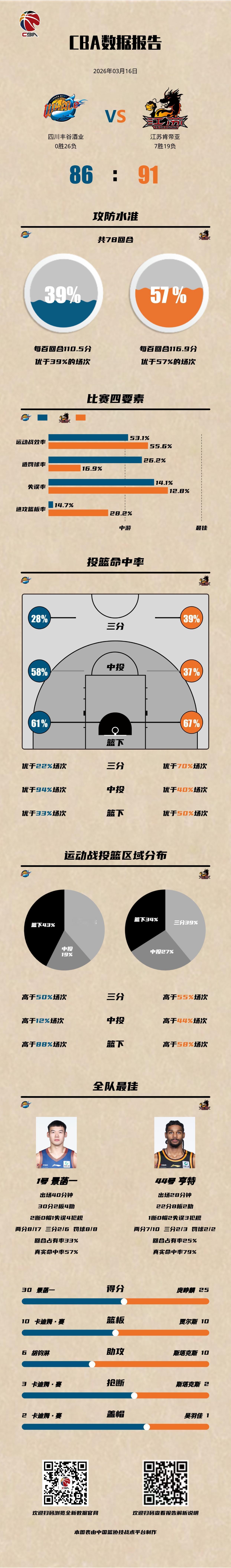 四川丰谷酒业 86-91 江苏肯帝亚四川男篮vs江苏男篮 四川丰谷酒业:景菡一30分4助攻2抢断,左朕年19分5篮板,杜智博17分4篮板; 江苏肯帝亚:庞峥麟25分5助攻,亨特22分8篮板,斯塔克斯13分4篮板10助攻2抢断。以城之名