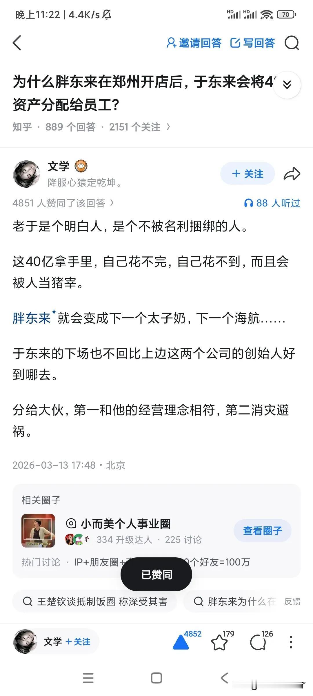 我问老公,胖东来把近40亿资产全分给员工,他老婆孩子没意见吗?我老公白了我一眼,