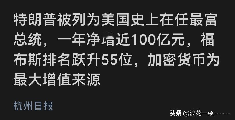 我去!特朗普将被列为美国历史上在任的最富有的总统?怪不得干工作这么有激情,这么拼命,有劲呢?你看看他每天发多少帖子?接受多少次采访?好像就从来没有睡眠一样。这可是一位80左右的老人啊! 常言说的好,今天工作不努力,明天努力找工作。要是有特朗普一半的精气神,我想口袋里也会鼓鼓的。[捂脸]