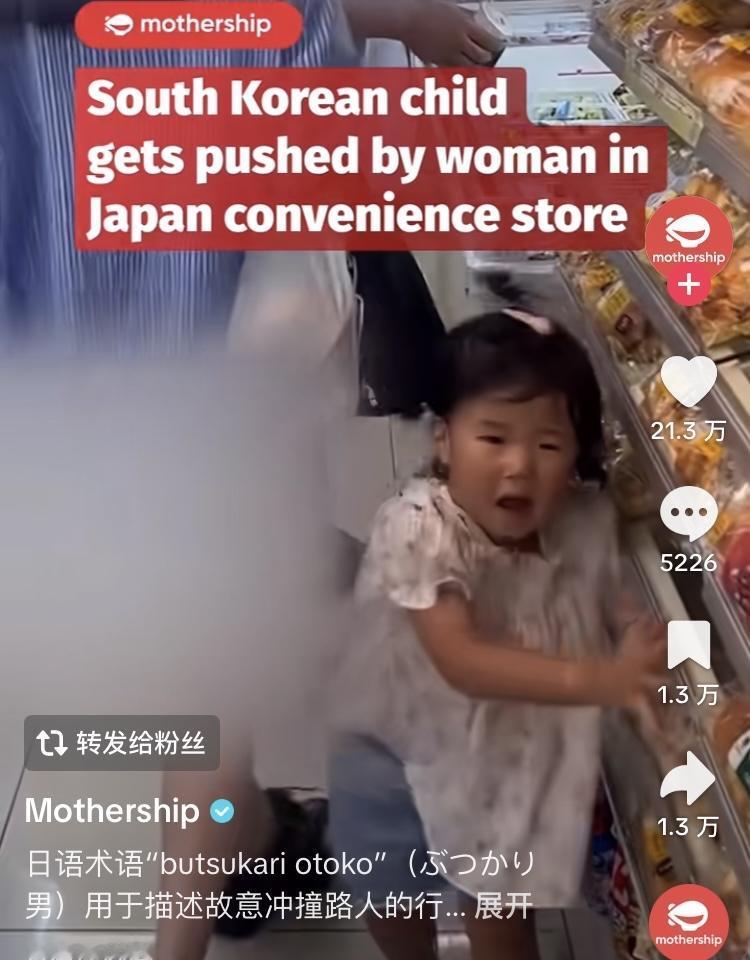 日本撞人族故意用包撞韩国几岁小女孩,小女孩被撞倒后吓到了,日本网友澄清只是个例,
