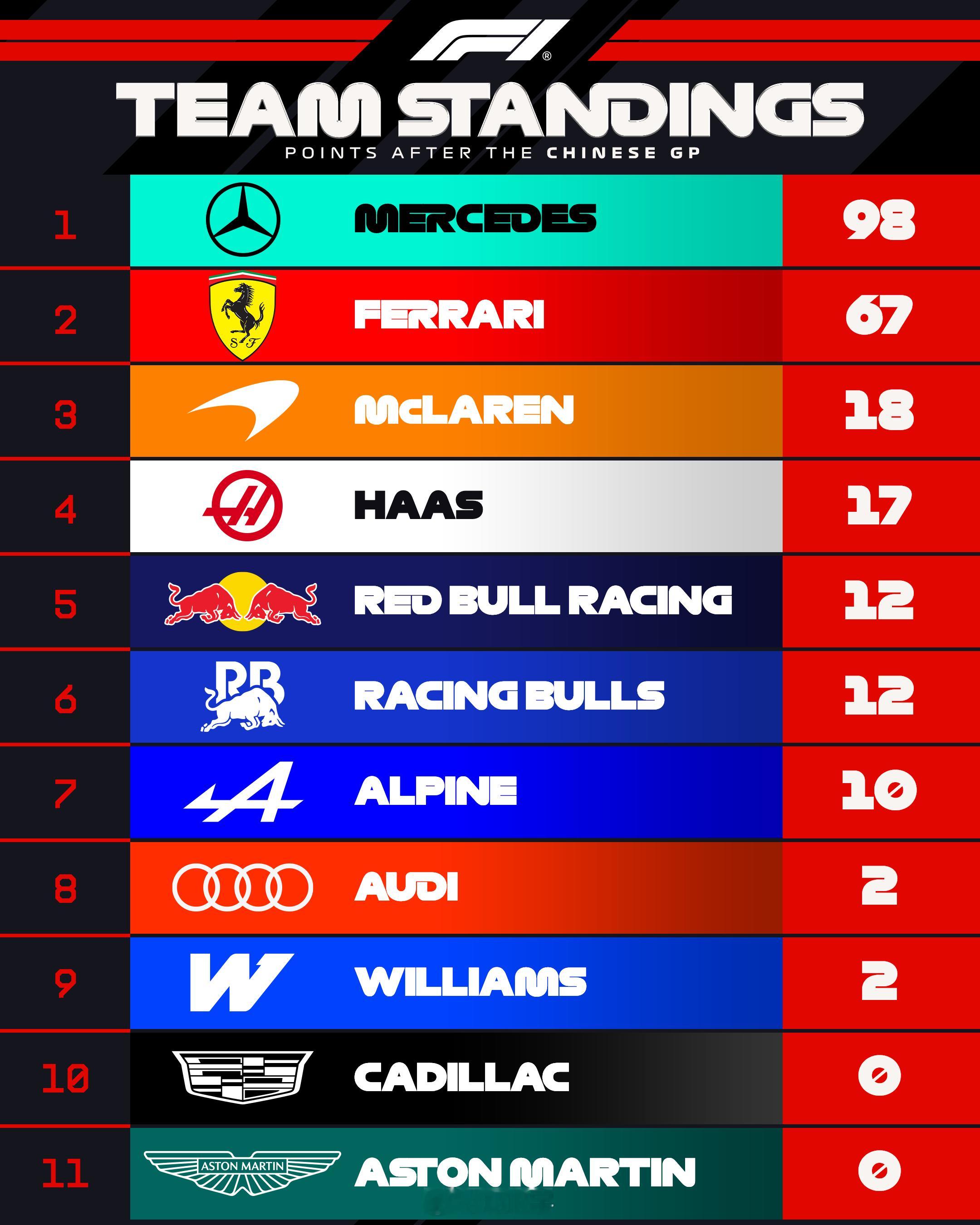 梅奔一骑绝尘,贝尔曼力压诺里斯、加斯利超越维斯塔潘。劳森居然是红牛系得分最高的车手之一F12026f1中国大奖赛
