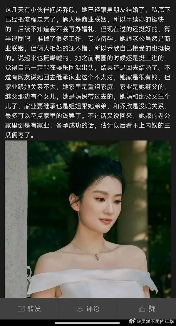 乔欣结婚传闻47字:网传乔欣喜结良缘。