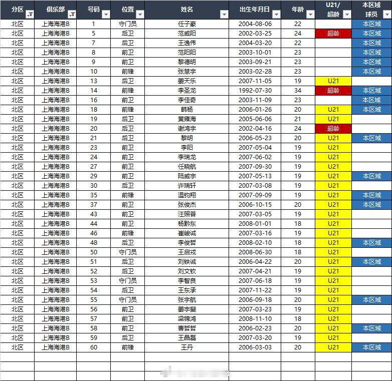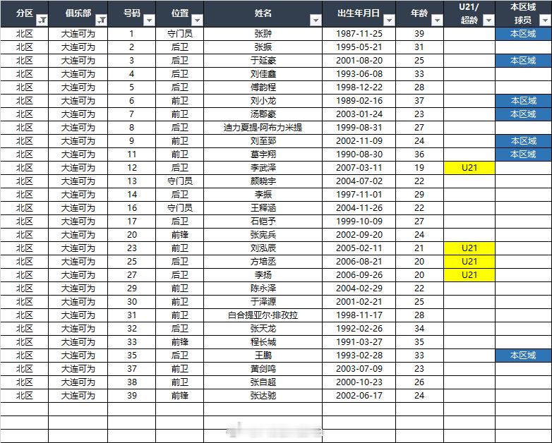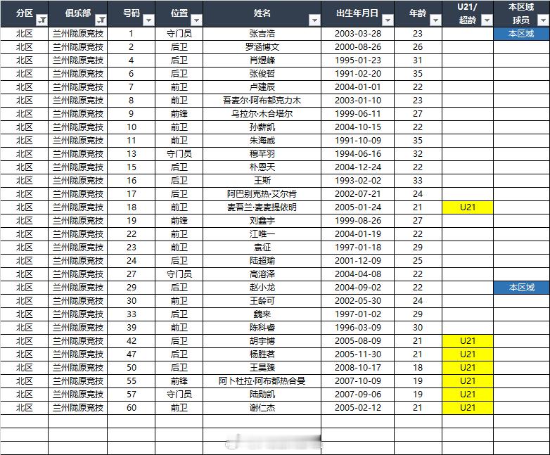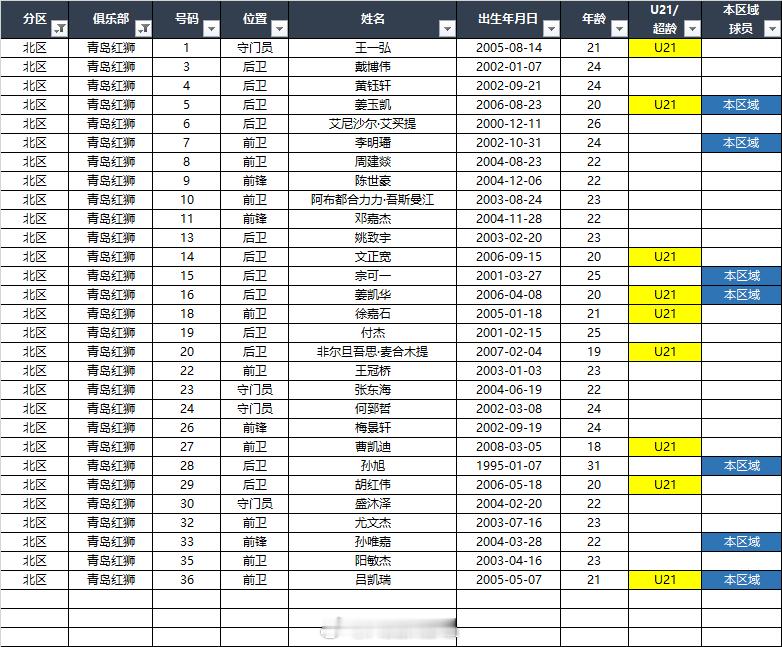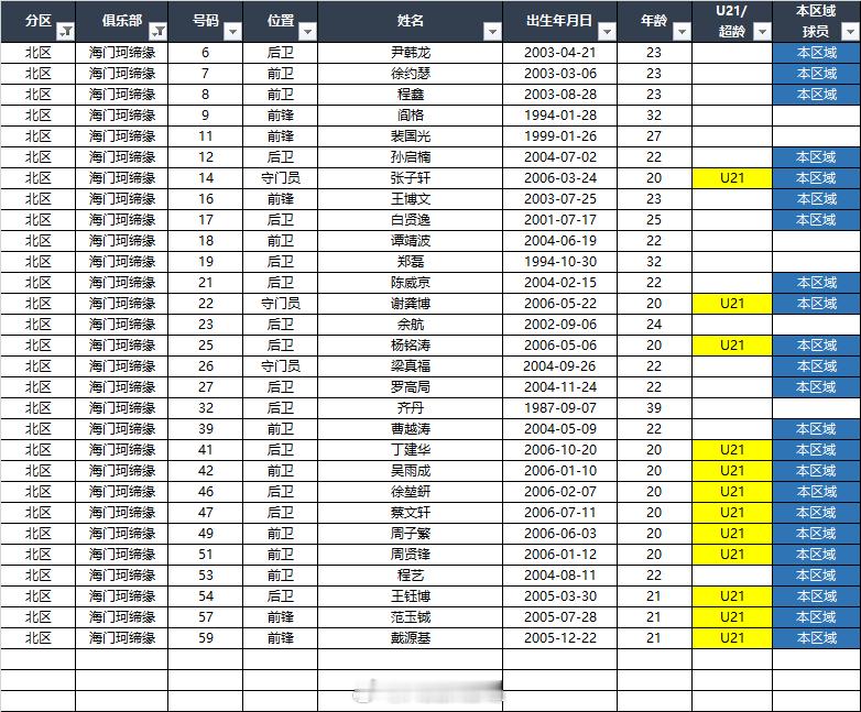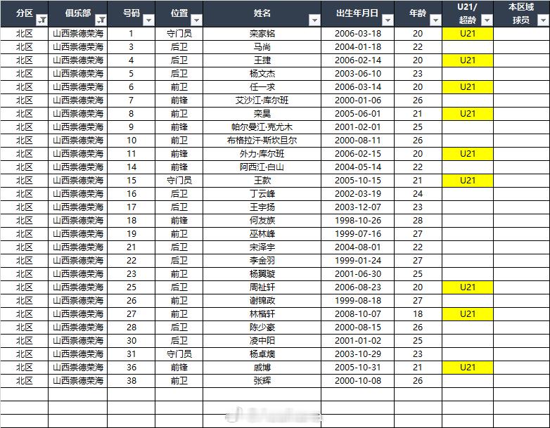 2026中乙(北区)联赛各队报名名单(季前)*自整理,本地青训的标注不一定准确,仅供参考,请以官方发布为准EXCEL(含南北区)下载链接:网页链接 百度网盘提取码: C226