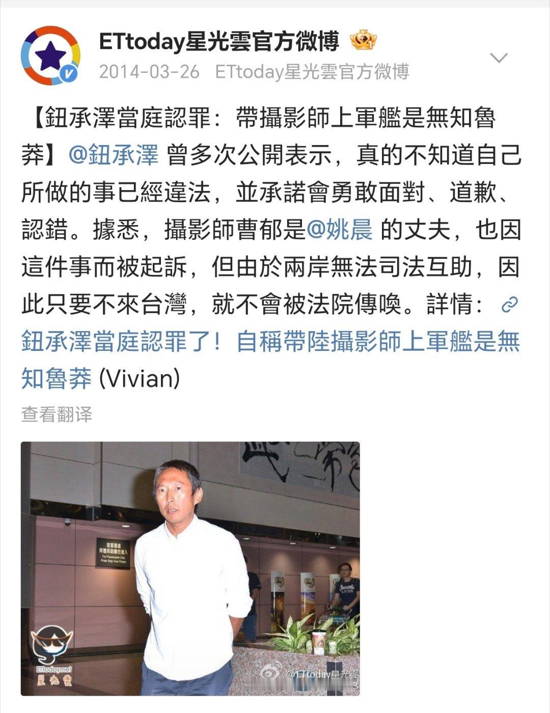 姚晨前夫曹郁还有这件事,所以只要曹郁去台湾,就有可能被台湾当局逮捕。