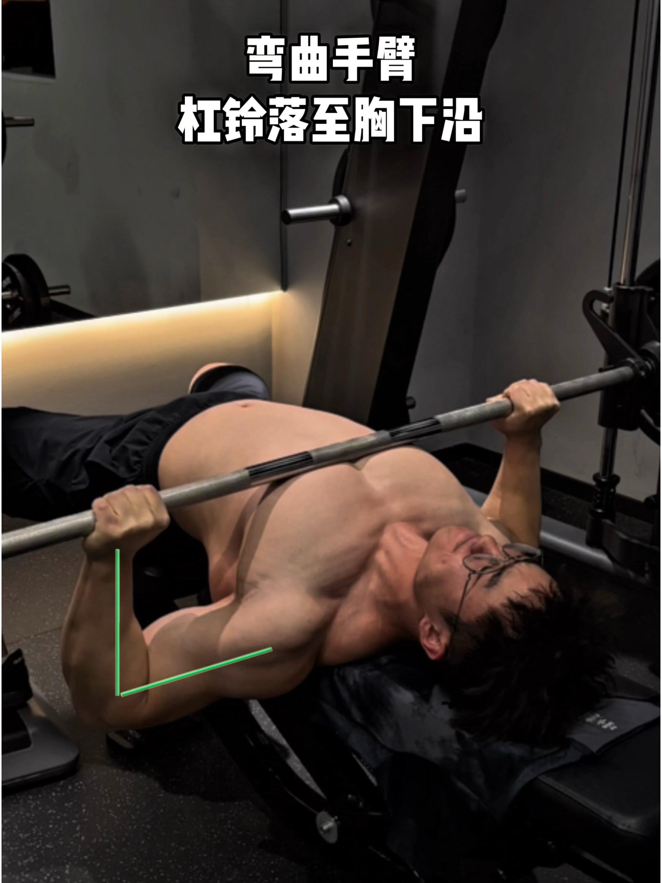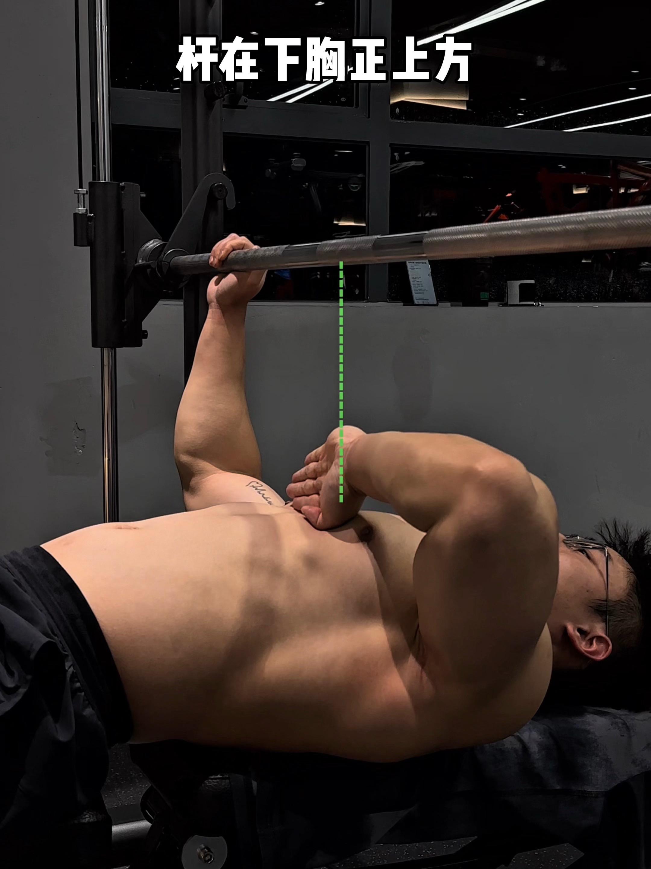 史密斯平板卧推,保姆级教程! 一、目标肌群 史密斯平板卧推,胸大肌 二、练前准备 杆在下胸正上方 沉肩挺胸,收紧上背 1.5倍肩宽握距 三、姿势建立 全握杠铃,不要半握 伸直手腕,不要弯曲 撑开肘部,手臂微屈 外旋手臂,掰杆向前 四、运动轨迹 弯曲手臂,杠铃落至胸下沿 稳定好肩胛,手臂不要完全伸直 五、注意事项 上推吐气,下放吸气,上推和下放杠铃时,肩膀都要向下压着凳子,可以更好地稳定肩胛骨; 杠铃要在乳头正上方,手肘要主动内收,可以减少肩关节压力!
