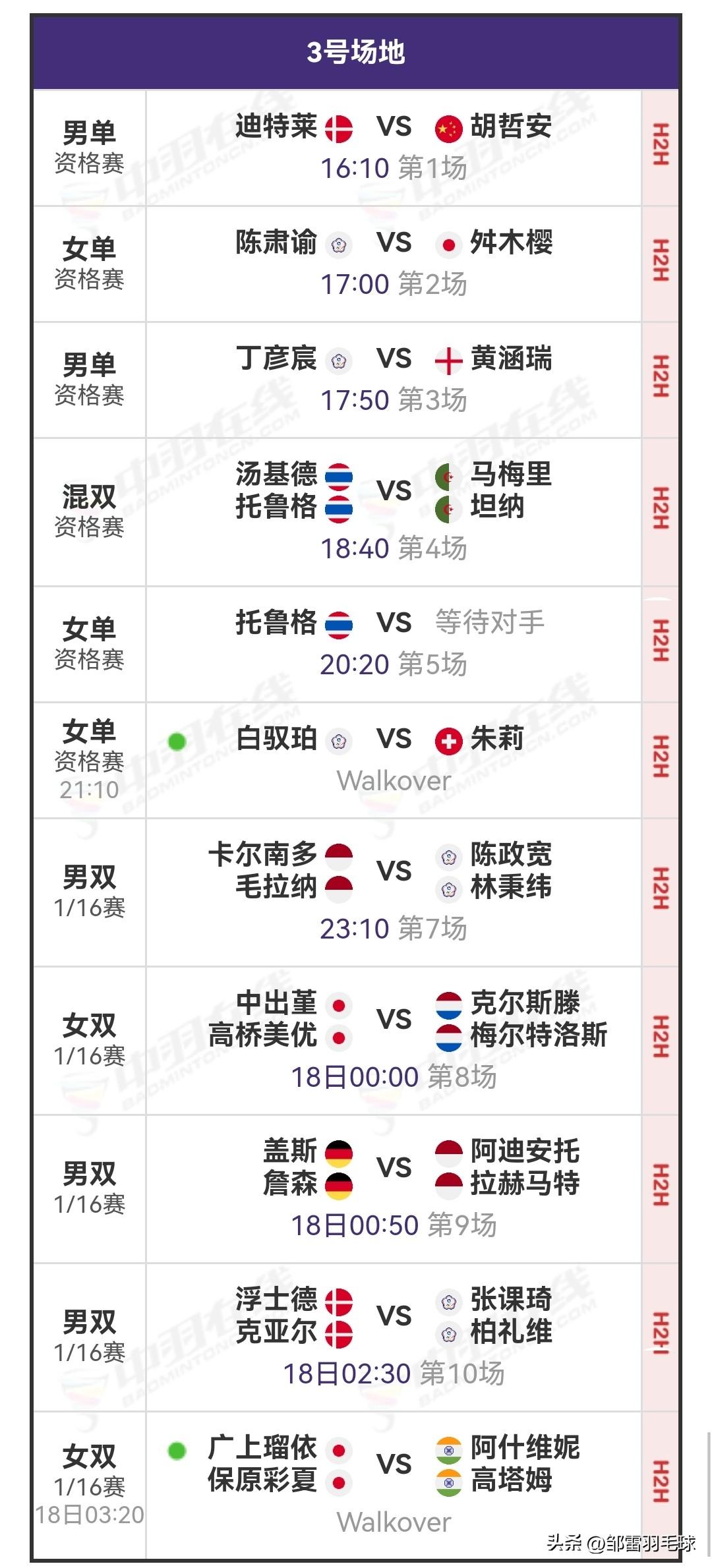 3月17日奥尔良羽毛球大师赛首日赛程安排 今日,2026年奥尔良羽毛球大师赛正式打响。北京时间16:00,资格赛率先开启;23:00,正赛——1/16决赛(一)的比赛接踵而至。届时,四块场地将同时进行比赛,详细对阵安排如图所示。 羽毛球 羽毛球爱好者 羽毛球比赛 羽毛球赛事 羽毛球有多少根羽毛? 国羽 国羽加油