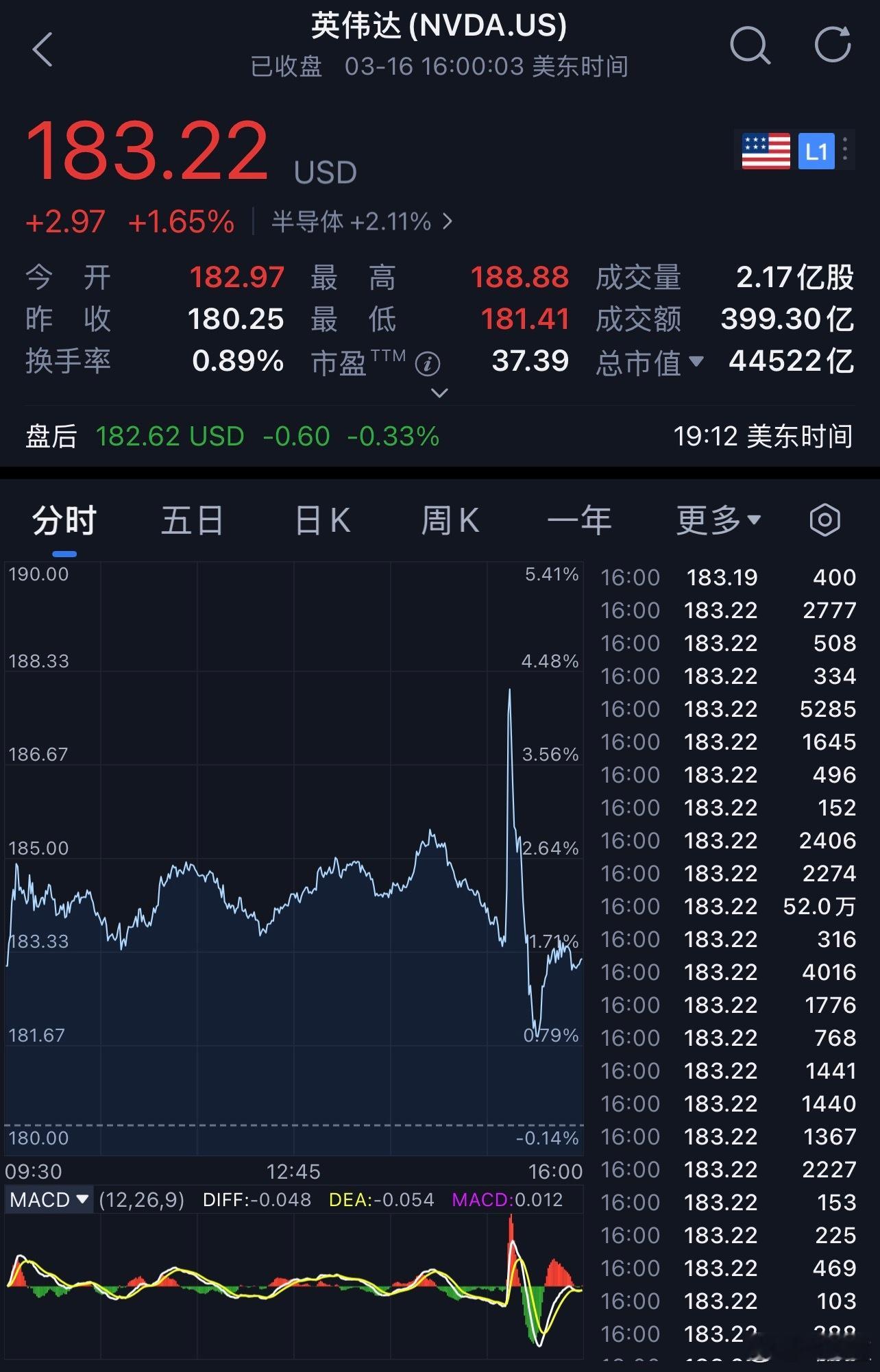 ❗️英伟达收涨1.65%(图5),盘中一度涨超4.3%。当时黄仁勋表示,公司目标是2025年至2027年实现1万亿美元营收。