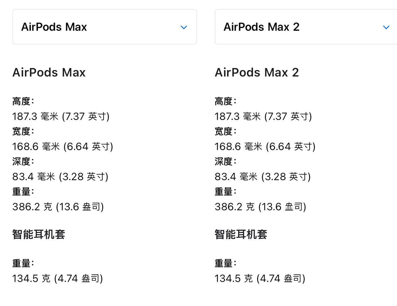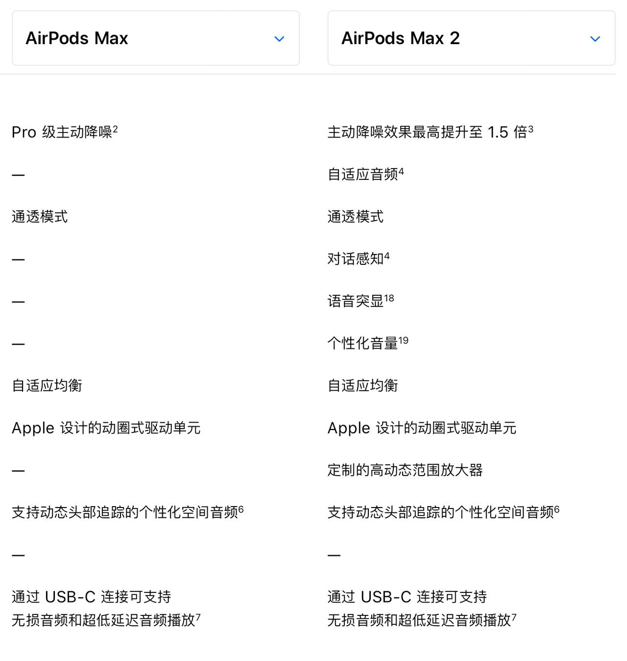 苹果发布了AirPods Max 2,主要变化: 升级到H2芯片,首次支持自适应音频 主动降噪效果相比前代提升1.5倍 升级到蓝牙5.3 依旧是重386.2克 售价3999元 比一代的4399还降价400,电商平台还能把价格打下去点