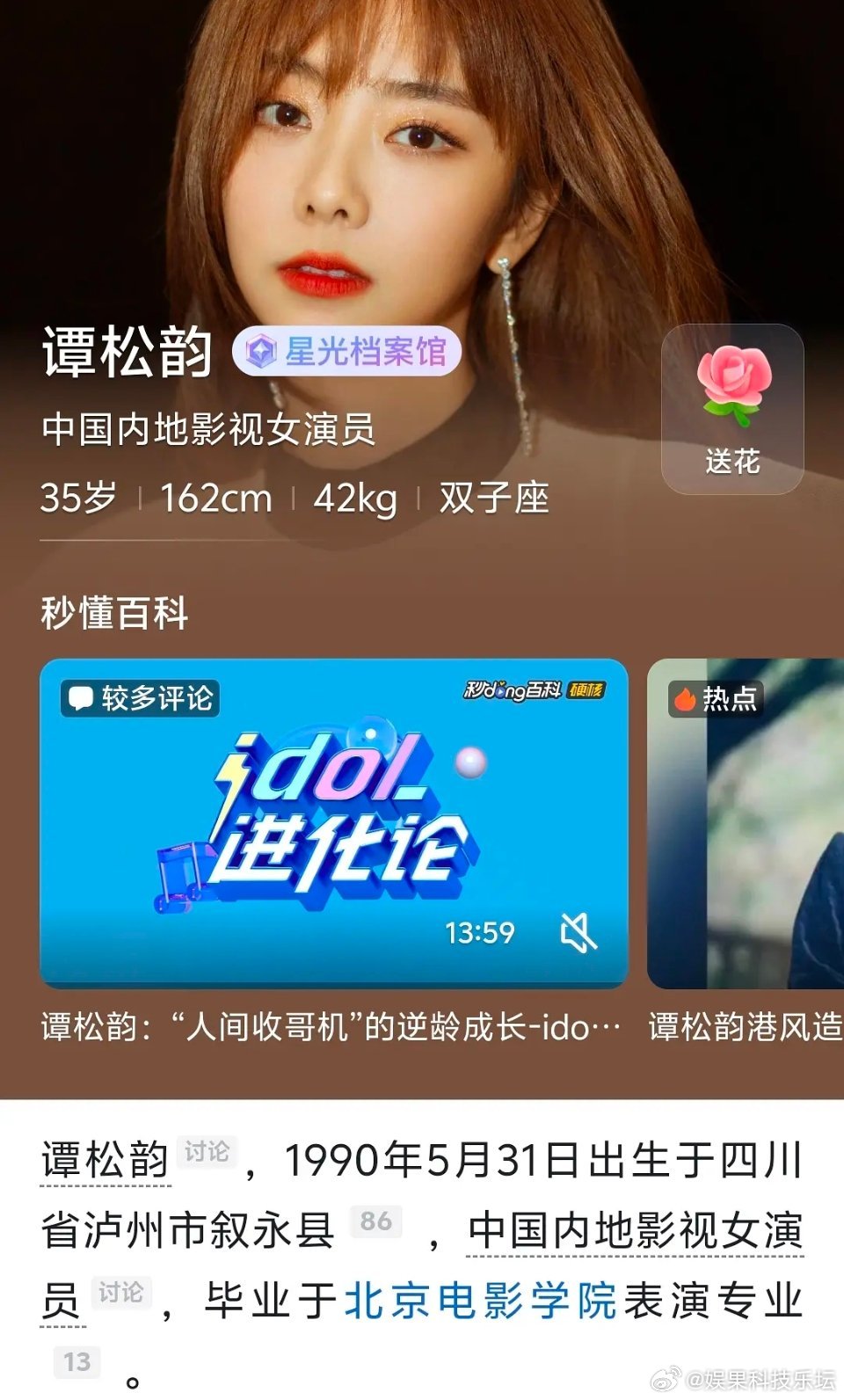 谭松韵35岁仍单身。出道这么多年,她没炒过实锤绯闻。不蹭流量不攀豪门,就死磕