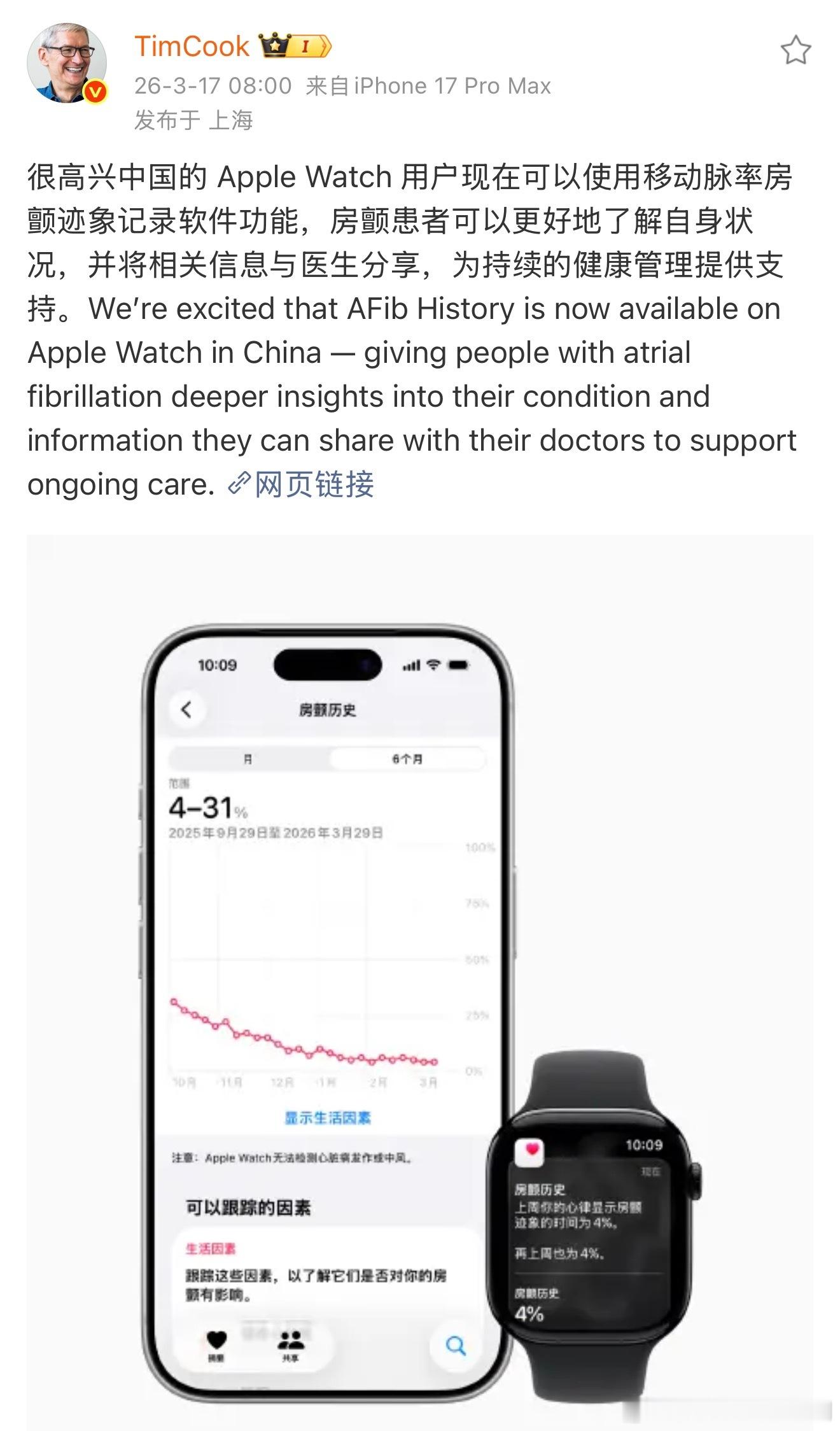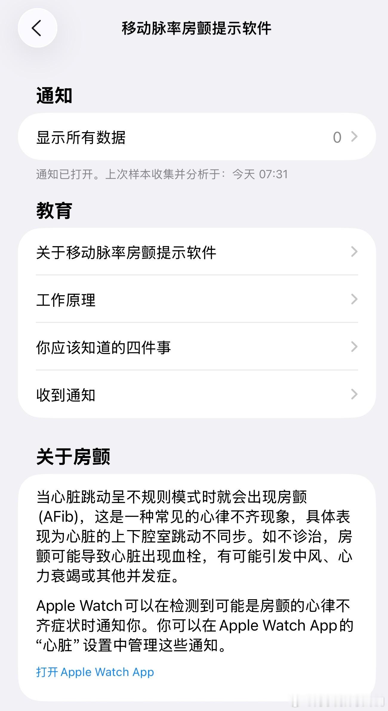 Apple Watch 是房颤患者的随身心脏日记:抓得住隐匿发作、看得清长期趋势、帮得上治疗调整、管得住生活诱因,让房颤管理从“被动就医”变成“主动掌控”,建议佩戴Apple Watch的用户都可以关注一波。 AppleWatch国行上线房颤功能