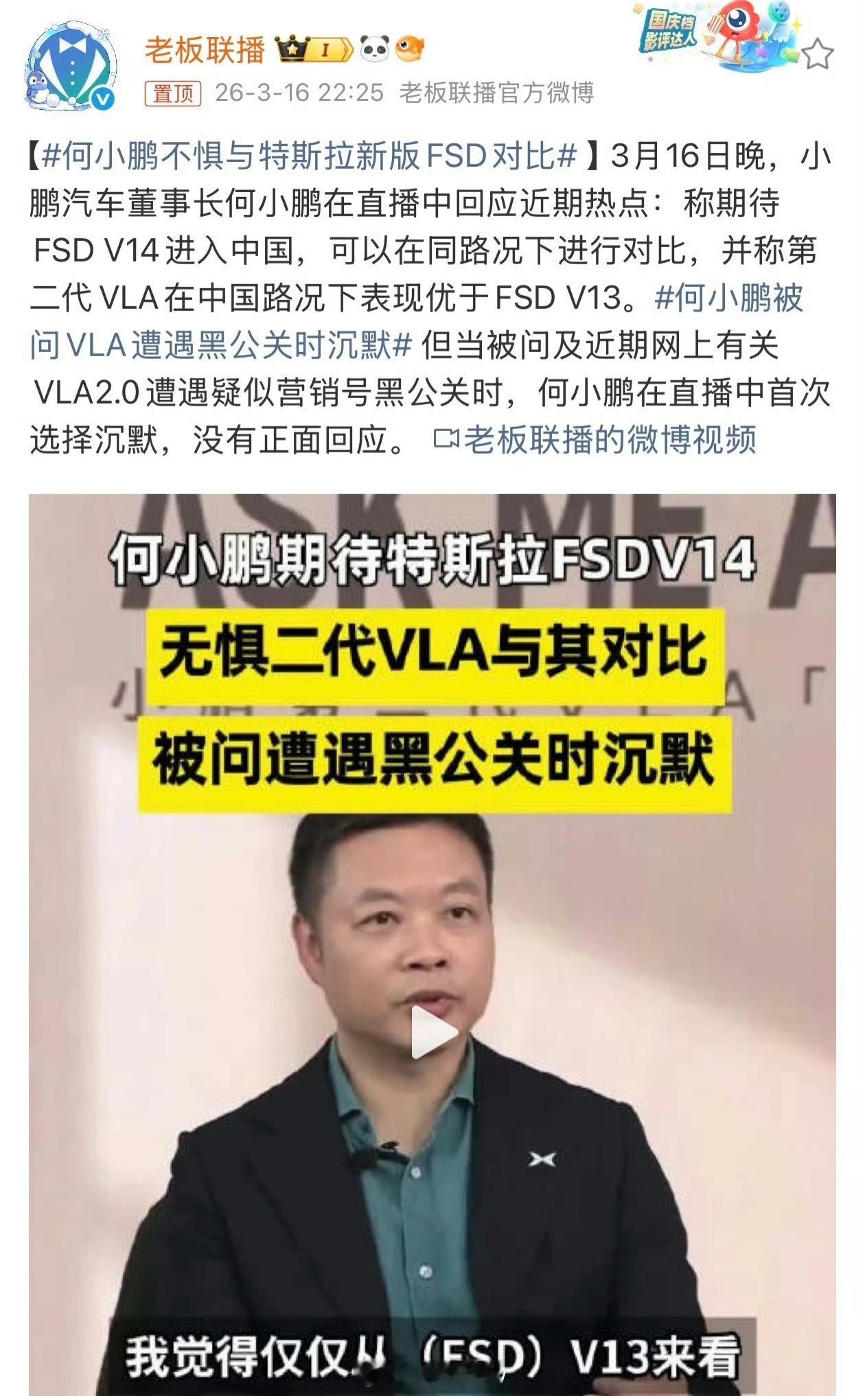 昨晚大师兄直播时有一个细节就是何小鹏被问VLA遭遇黑公关时沉默