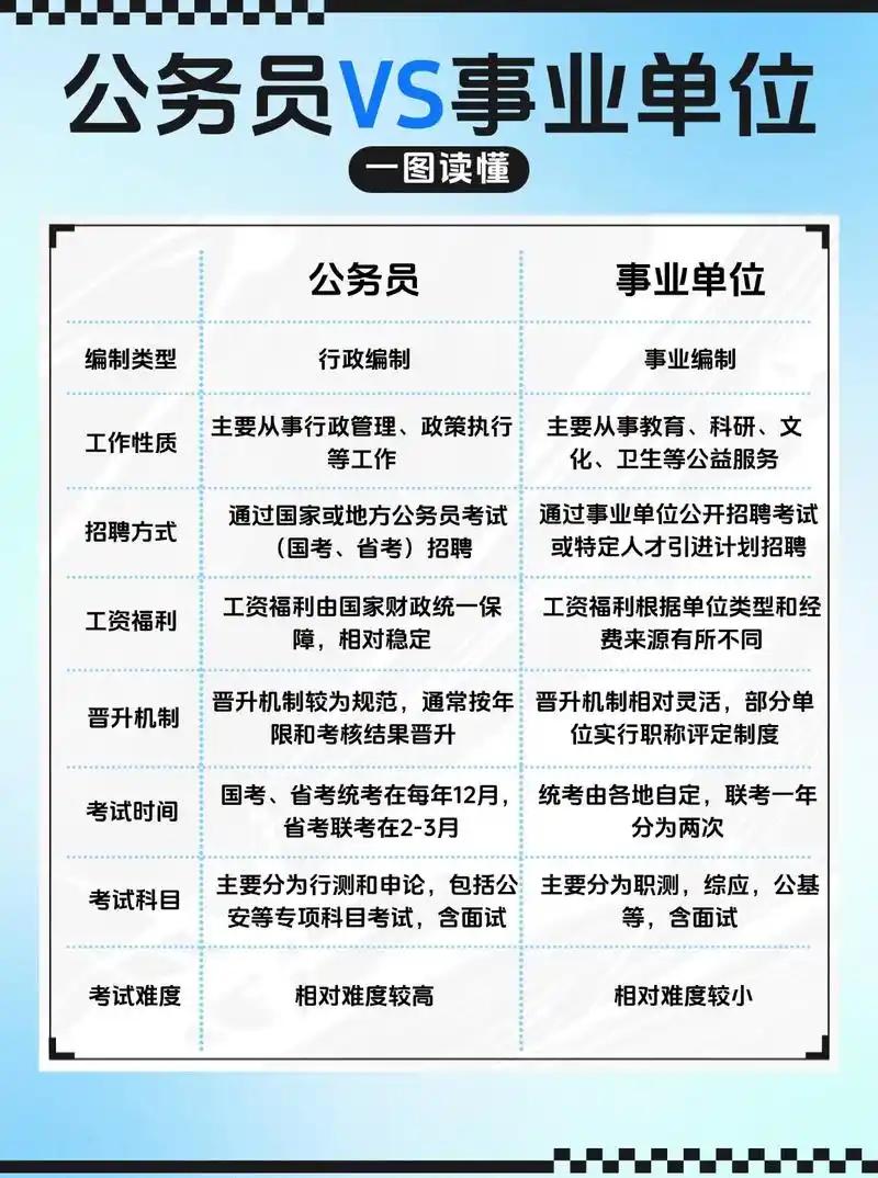 公务员和事业编都有退出机制,并非绝对不会 “下岗”,但两者的稳定性、退出条件和场景差异很大。 一、公务员:稳定性极高,辞退极严 公务员受《公务员法》严格保护,正常履职、无严重过错基本不会被辞退,更不会因单位经营、精简而 “裁员”。 法定辞退情形(仅 5 种): 1、连续两年年度考核不称职 2、不胜任现职,又拒绝其他安排 3、机构调整、撤并、缩编,拒绝合理安排 4、不履行义务、不守纪律,屡教不改且不宜开除 5、旷工 / 逾期不归:连续超15 天,或一年累计超30 天 不得辞退的情形(保护条款) 1、因公致残、丧失 / 部分丧失工作能力 2、患病 / 负伤在医疗期内 3、女性在孕期、产假、哺乳期 4、法律规定的其他情形 二、事业编:稳定性次之,分类型、有差异 事业编稳定性弱于公务员,且因单位类型、经费来源不同,风险差异明显。 1. 按单位类型划分风险 公益一类(全额拨款):如义务教育、基础科研、公共卫生,最稳,基本无下岗风险,改革多为转岗、分流。 公益二类(差额拨款):如公立医院、高校,较稳,但考核趋严,存在解聘、降岗可能。 生产经营类(自收自支):如设计院、出版社、招待所,风险最高。2026 年改革收官,这类单位全面转企,事业编取消,变为企业员工,可按劳动法裁员 / 解除合同。 2. 事业编退出 / 解聘情形 考核不合格:连续两年不合格可解聘。 违纪违法:严重者开除,终止人事关系。 机构改革转企:单位转制为企业,编制取消,员工签劳动合同,不再是事业编。 聘用合同到期不续:部分岗位实行聘用制,合同期满可不再续签。 三、总结 公务员:几乎不会因非法定情形下岗,辞退是极个别、严格依法的情况。 事业编:公益一类最稳;经营类已转企,不再是 “铁饭碗”,存在下岗 / 失业风险;差额类随考核与改革,稳定性下降。