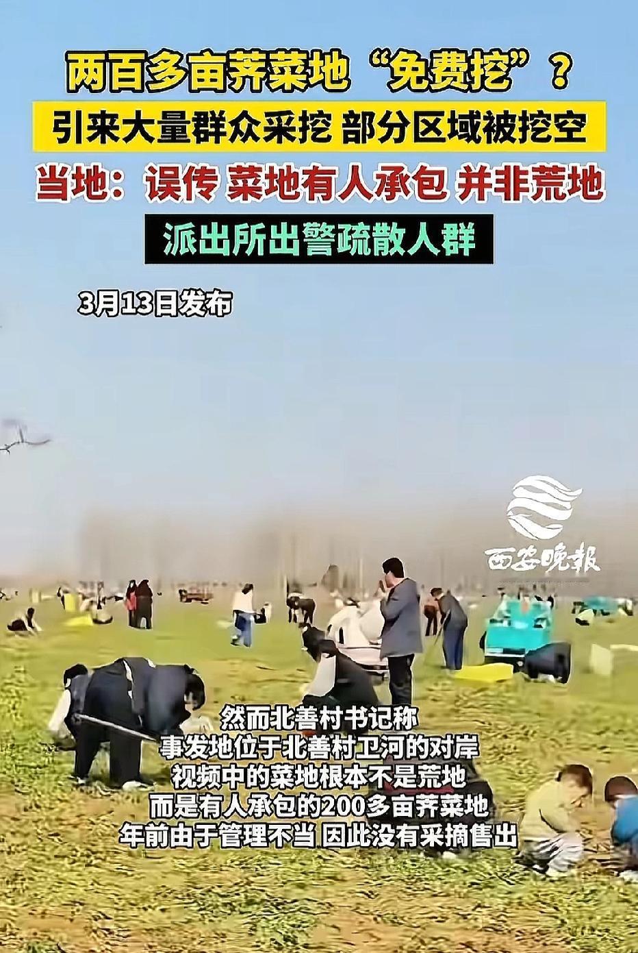 太嚣张!河南安阳,女子发现200亩荠菜,她不问主人,也不管地界,当场动手狂挖,还拍视频发到网上,甚至放话:免费的随便挖,还给出地址,消息一出,大批人蜂拥而至,整片荠菜被瞬间薅得精光。承包地主人赶到当场傻眼,拼命驱赶也拦不住,崩溃报警。女子结局大快人心! 最近在河南和河北交界的卫河边上,出了个让人生气又无语的事,说白了,就是有人想红想疯了,拿着别人的血汗钱不当回事,在网上瞎起哄,结果坑苦了一位老实巴交的承包户。 事情是这样的,有个女的溜达到这边,看见一片绿油油的荠菜地,足足有200亩那么大,长得那叫一个喜人。 正常人看见这架势,第一反应肯定得琢磨琢磨:这地是不是有人承包的?这菜是不是人家特意种的?可这位大姐倒好,脑回路清奇,压根不问青红皂白,直接默认这是无主的野地。 她二话不说,掏出手机就开始拍视频,一边拍还一边在那嚷嚷:“家人们快看啊,这全是免费的野生荠菜,随便挖不要钱!”更缺德的是,她不仅自己在视频里大肆宣传,还把这块地的具体定位给发到了网上,号召十里八乡的闲人都来这“进货”。 这视频一发出去,那传播速度简直比病毒还快,没过多久,这消息就在周边几个村镇炸开了锅。 你是没见那场面,简直可以用“疯狂”来形容,大爷大妈、甚至全家老小齐上阵,开着私家车的、骑着三轮车的、扛着编织袋的、拿着铁锹铲子的,乌泱乌泱的人群像潮水一样涌进了这片地里。 原本安静的田间地头瞬间成了闹市,路边的车停得满满当当,把交通都给堵死了,这帮人进了地里那是真不客气,埋头就是一顿猛挖。 管它大苗小苗,也不管这地里铺没铺地膜、垄沟有没有踩坏,反正就是见绿就铲,所到之处寸草不生。 这块地当然是有主的,是人家农户辛辛苦苦承包下来,专门种荠菜等着卖钱养家糊口的,等承包户听到消息火急火燎地赶到地里一看,整个人都傻了。 原本长势喜人的200亩荠菜,现在已经被挖得七零八落,地里被踩得像是刚打完仗一样,一片狼藉,那些辛辛苦苦铺设的灌溉设施、地膜全都被毁了个精光,这一年的心血眼看就要打水漂了。 承包户急得直跺脚,嗓子都喊哑了想把人赶走,可根本拦不住这么多人,甚至还有人理直气壮地回怼他:“网上都说了是免费的,我不挖别人也得挖,凭啥不让我挖?”这强盗逻辑简直让人气得想吐血。 实在没辙了,承包户只能报了警,警察蜀黍赶到现场,拿着大喇叭一遍遍地喊话,告诉大家这是私人承包的土地,挖采属于侵权违法行为,好不容易才把这群头脑发热的人群给劝散了。 事后一查才知道,那个发视频的女的就是为了博眼球、蹭流量,想涨点粉丝,完全不顾事实真相,就在那瞎编乱造,眼看着事情闹大了,她心虚了,赶紧把视频删了,还想把账号藏起来躲风头。 但网络是有记忆的,这事哪能这么容易就过去?她的行为不仅给农户造成了巨大的经济损失,还煽动了大规模的人群聚集,严重扰乱了公共秩序。 当地警方很快就顺藤摸瓜锁定了这名女子,依法对她展开了调查,这下好了,她不仅要面临行政处罚,还得赔偿农户的损失。 为了那点可怜的流量,把自己的底线和法律都抛诸脑后,这下算是彻底栽了,真是大快人心! 这事也给咱们所有人都提了个醒:看见地里的庄稼,再怎么不值钱,那也是别人的私有财产,不是天上掉下来的馅饼,不问自取就是偷,聚众哄抢更是违法。 别以为跟着大伙儿一起干坏事就能法不责众,网络也不是法外之地,为了点流量去造谣传谣、煽动哄抢,最后倒霉的只能是你自己。 对此你怎么看? 信源:新京报