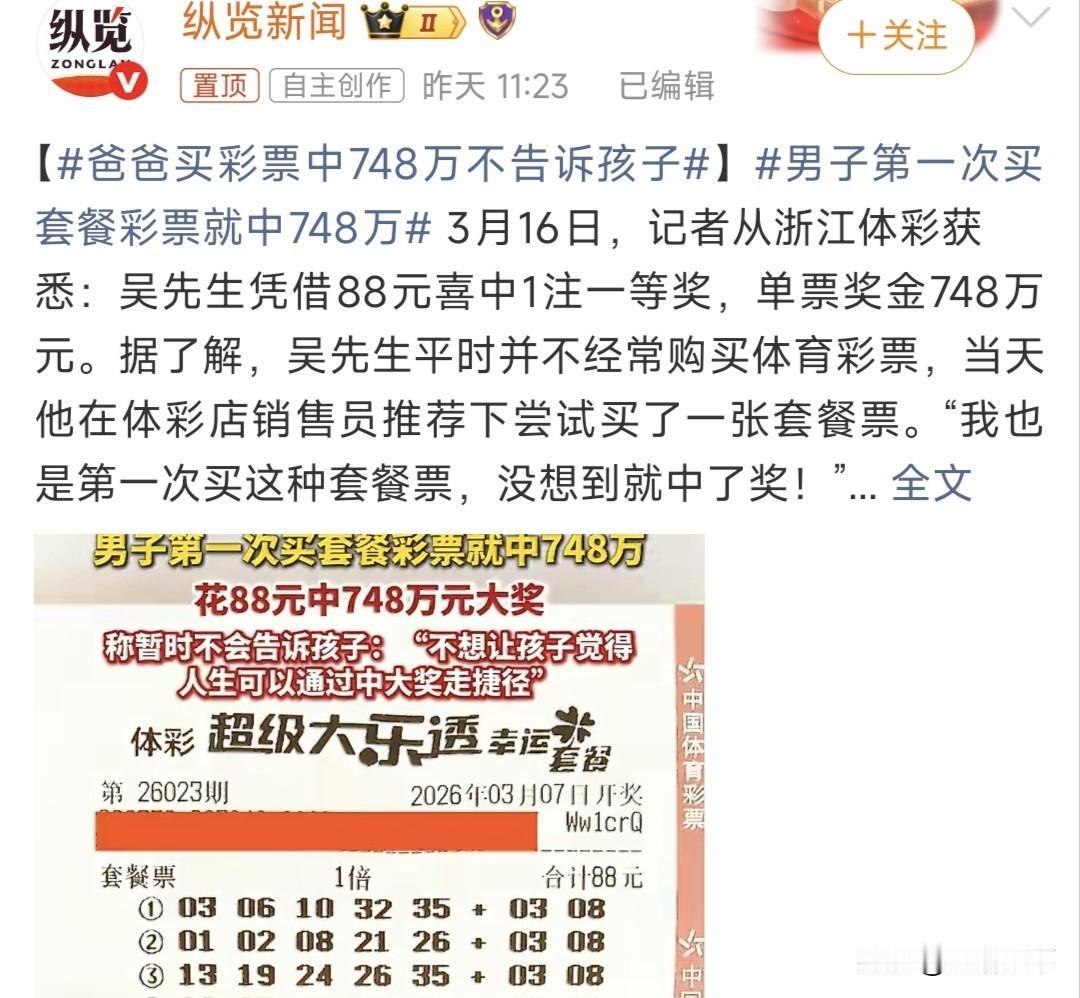 不告诉孩子,然后上新闻告诉所有网友[吐舌]?还是彩票滞销了,救救彩票吧[流泪]?