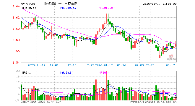 3月17日,截止午间收盘,医药50ETF博时(159838)涨1.06%,报0.573元,成交额137.61万元。医药50ETF博时(159838)重仓股方面,药明康德截止午盘涨2.73%,迈瑞医疗涨1.37%,恒瑞医药涨2.57%,联影医疗跌0.08%,爱尔眼科涨0.49%,新和成跌4.66%,华东医药涨1.97%,科伦药业涨2.08%,长春高新涨0.12%,康龙化成涨0.72%。