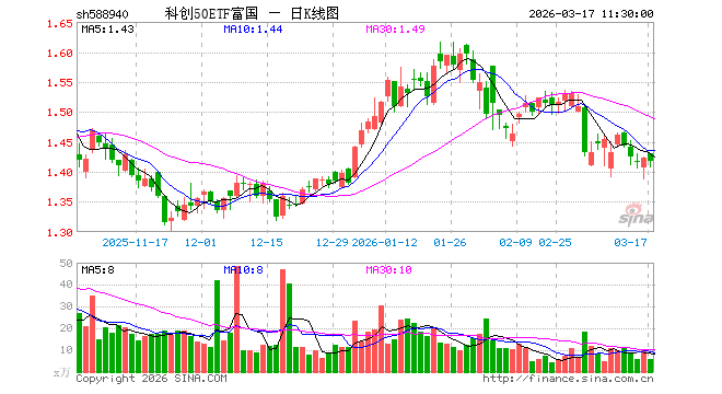 3月17日,截止午间收盘,科创50ETF富国(588940)跌0.42%,报1.417元,成交额833.90万元。科创50ETF富国(588940)重仓股方面,中芯国际截止午盘跌0.81%,寒武纪涨0.63%,海光信息跌0.89%,澜起科技跌2.47%,中微公司涨0.20%,金山办公涨0.55%,联影医疗跌0.08%,拓荆科技跌1.40%,芯原股份涨1.03%,沪硅产业跌1.08%。