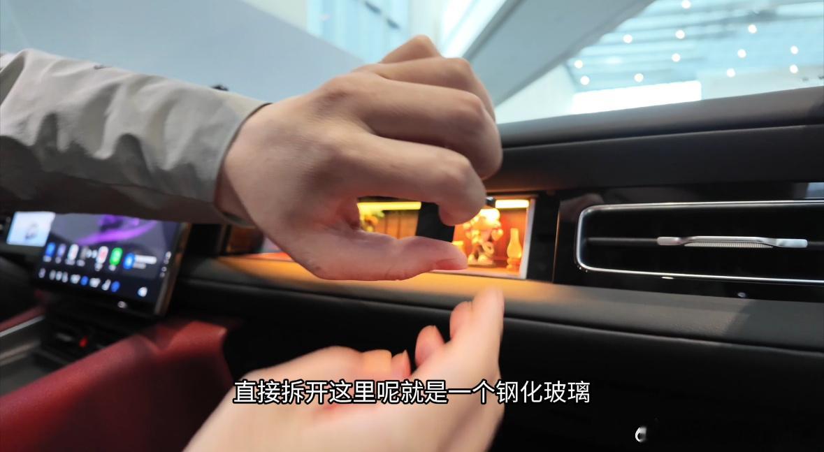 外面是一个钢化玻璃盖板,这个盖板打开副驾手套箱后有个按钮,按下按钮之后就可以取下钢化玻璃。