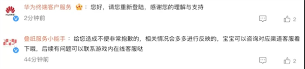 对此,华为终端客户服务在相关博文下回复:您好,请您重新登陆,感谢您的理解与支持。