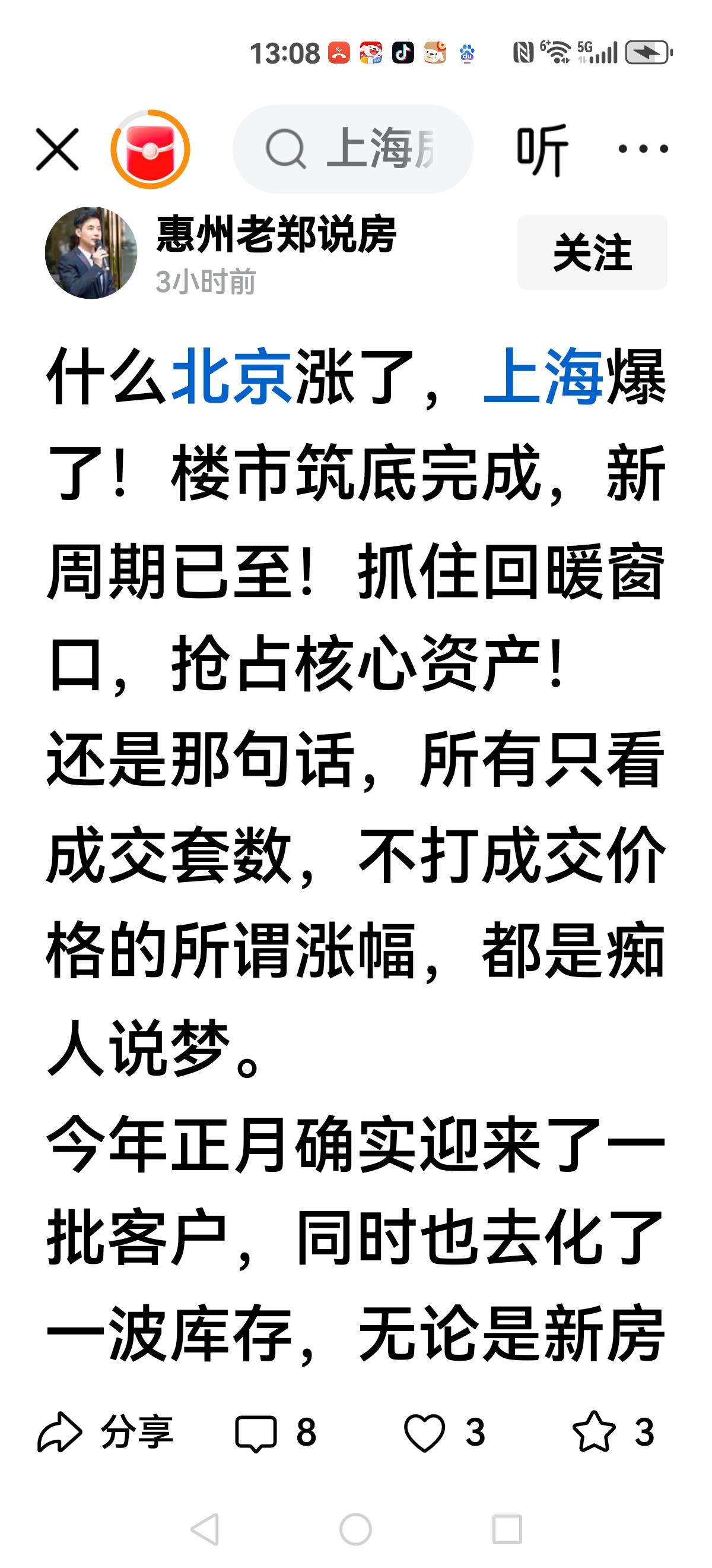 【楼市的诡异】 楼市的话题是稳住 如何稳住?就是把捆在楼市的条条框框松绑。 但是又不能重心放在楼市,一旦有起色,就怕井喷,因为压抑五年的楼市,一旦人们恢复信心,那上涨超出想象。 稳住,持续,但不真正的注资,也不给开发商政策。 甚至限制,禁止土地用于商品房开发,只有消化旧的土地,才能有新的土地。 稳定,略有上涨,绝不能抢购,更不能投资! 楼市逼空库存,迎接新的周期!你该怎么办?错过3月份以前窗口期,或者听从北哥的声音,没有好好分析。