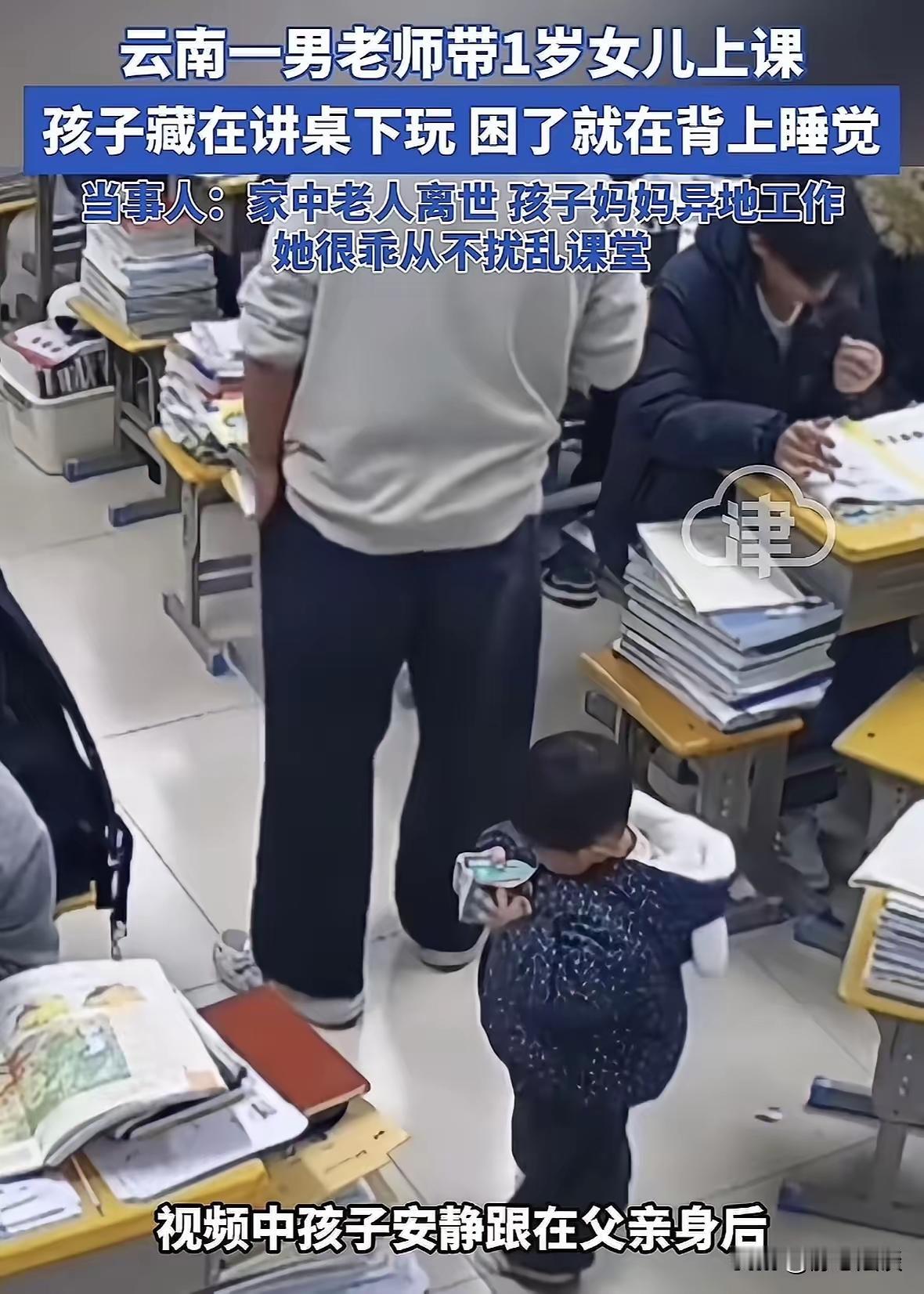 这件事让我感触很深。訾老师面对突如其来的家庭变故,一方面承担起照顾年幼孩子的重任,另一方面又坚持完成教学任务,选择把孩子带到课堂,这种行为既体现了他的责任感,也凸显了他作为一个父亲和教师的双重担当。 首先,他没有因家庭困难而放弃工作职责,也没有因为工作压力而忽视孩子的照顾。在现实生活中,这样的两难境地并不鲜见,很多普通人都在亲情与责任之间艰难平衡。訾老师的做法虽然非常辛苦,但却是他根据实际情况选择的最妥当方式,也体现了他对学生和家庭的爱心与责任心。 其次,学校的体谅和支持非常重要。学校没有简单地苛责他,而是主动调整课程安排,给予他更多的理解与帮助。这种有温度的管理方式不仅缓解了老师的压力,也传递出了“以人为本”的教育理念和人文关怀。这样的环境才能激发教师的积极性,更好地服务于教育事业。 从法律和社会道德层面来看,老师的行为并没有违反相关法律法规,也符合公序良俗。社会应该包容和理解困难时期的这类特殊情况,而不是一味指责或排斥。我们更需要的是宽容、支持与鼓励,让社会和单位成为人们解决困难的依靠,而不是增添负担。 更重要的是,这件事本身就给学生们上了极为生动的一课——什么是担当、责任和爱。在知识传授之外,这种生活中的榜样力量,更让学生们感受到做人的道理和勇气。 总的来说,我认为訾老师的做法体现了人性的光辉和职业的坚守,学校的回应体现了管理的智慧和温度。这样的故事值得被更多人看到,也希望社会对有类似困境的人多些理解与帮助。生活不会一帆风顺,但正是有了彼此的支持和关怀,我们才能走得更稳、更远。每日分享一句人生感悟 网络游戏真的会给孩子带来危害么