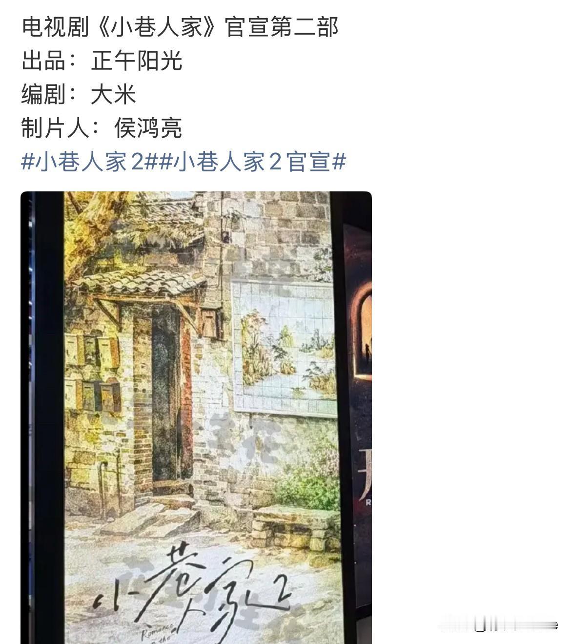 3月17日,好消息!《小巷人家2》官宣! 网友呼吁希望闫妮,李光洁,郭晓东,蒋欣等核心演员回归,认为他们是“剧集灵魂” 参考《欢乐颂》《琅琊榜》等续集模式,我猜《小巷人家2》应该讲述的是另一条巷子的新群像故事,与第一部只是剧名上存在关联! 毕竟《小巷人家1》大结局很完整,筱婷生双胞胎、图南结婚、庄超英独居苏州…… 我觉得像黄磊他们那种《小别离》系列也不错,大人不变,孩子变,小孩子也可以不变,变大孩子也行,几个小演员挺有灵气的! 大孩子就各自做其他剧得主角吧!