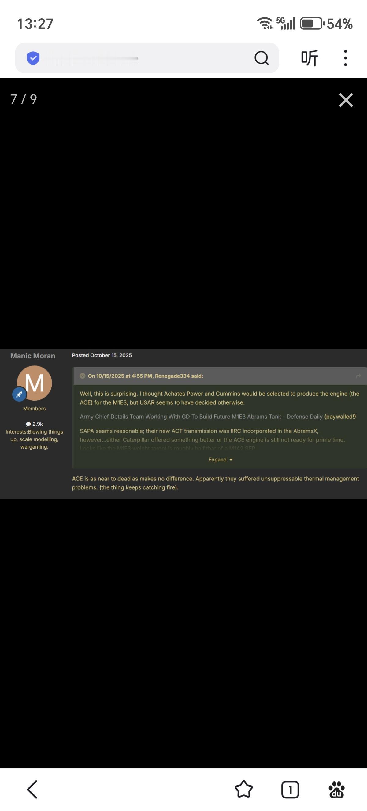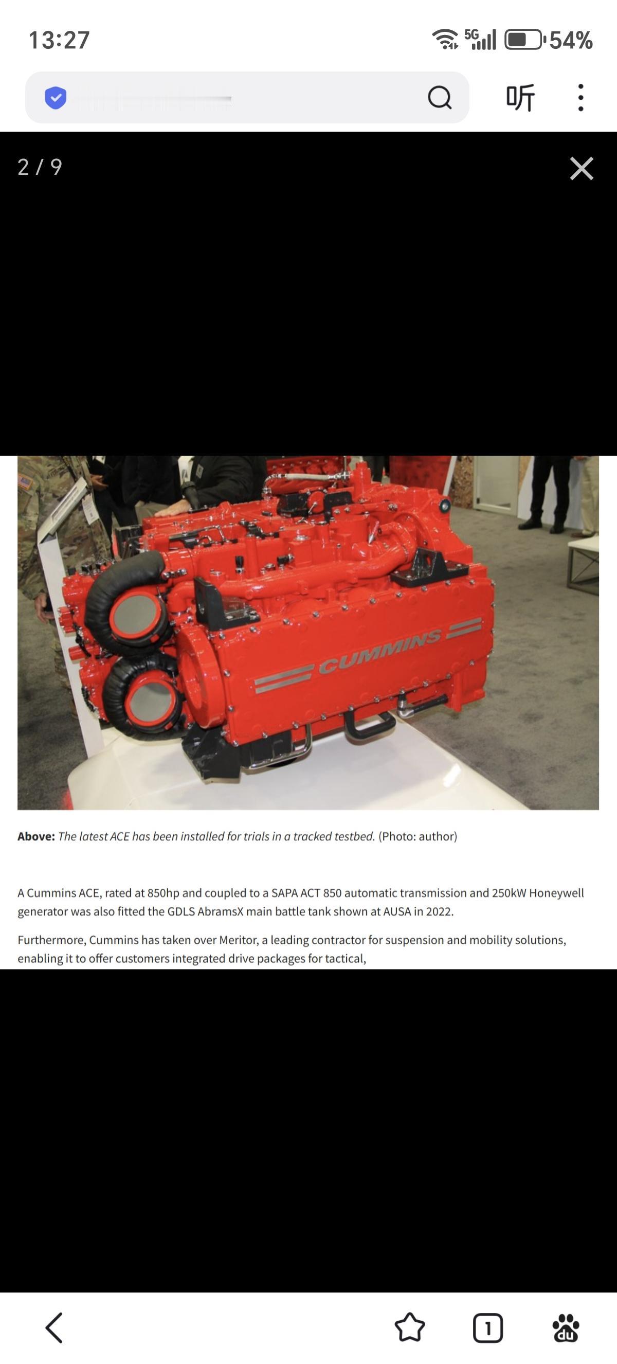 已经确认,2022年美国推出的54公吨重“艾布拉姆斯X”(AbramsX)主战坦克技术演示车,实际的动力系统采用的是850马力的康明斯“先进战斗发动机”(ACE)对置活塞发动机和SAPA的ACT 850先进战斗传动系统,并搭配一组250千瓦(340马力)的霍尼韦尔发电机组。 850马力版ACE-850发动机同样使用四缸对置活塞配置,这是原先用于OMFV项目(现在更名为XM30)的ACE-1000四缸机网页链接的降功率版本。为何如此?根据美国陆军现装甲中校尼古拉斯·莫兰的说法,目前美军一直无法解决ACE-1000的散热,其散热管理系统(TMS)经常过热。 因此今年公布的M1E3原型车采用民用工业机改军版的1100马力C13D卡特彼勒柴油机并非退步,而是在研的ACE发动机实际上没办法满足需要。
