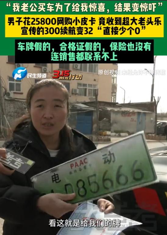 惊喜变惊吓了!河南开封,男子花25800元在网上买了一个小皮卡,本打算给妻子接孩子用,也想着给她一个惊喜,结果收到货才发现,就是一个超大的老头乐,车确实很大,可宣传的300公里实际只有32,直接打了一折。这可把女子愁坏了 河南开封男子之所以想着买辆小皮卡,全是为了妻子。家里孩子上幼儿园,妻子每天接送都要挤公交,风吹日晒不说,遇到下雨天更是狼狈不堪。 男子看在眼里,记在心里,琢磨着给妻子一个惊喜,偷偷攒钱,打算网购一辆性价比高的小皮卡,既能接送孩子,平时也能拉点小东西,实用又有面。 他在网上翻了好几天,对比了不少款式,最终看中了一款宣传得十分诱人的小皮卡。页面上标注着全款25800元,配图里的车子小巧精致,颜值在线,还明确标注着“续航300公里,家用接送孩子首选,厂家直销,包邮到家”。 男子没有多想,觉得这个价格能买到这样的皮卡,十分划算,当即就付了全款,还特意叮嘱商家,一定要按时发货,他想赶在周末给妻子一个惊喜。 付款之后,男子每天都盼着车子到货,时不时就查看物流信息,脑海里一遍遍想象着妻子收到惊喜时开心的样子。 商家也一直承诺,车子质量有保障,和宣传的一模一样,让他放心等待,还发来了不少车辆的实拍视频,视频里的车子看起来确实和皮卡没差别,续航也说得天花乱坠。 大概过了一周,物流通知男子取货,他特意请了半天假,兴冲冲地赶到物流点,可当货车打开,看到车子的那一刻,他整个人都懵了。 眼前的车子确实很大,可根本不是他想要的小皮卡,浑身透着廉价的塑料感,造型笨重,分明就是一台放大版的老头乐,和网上宣传的模样相差十万八千里。 他不死心,仔细检查了车子的每一个地方,没有皮卡的硬朗质感,没有正规的车辆合格证,就连车门的胶条都贴得歪歪扭扭,底盘也是简单焊接的,摸起来轻飘飘的,没有一点落地感。 更让他崩溃的是,商家全程诱导他脱离平台私下交易,付款后只给了一个简单的转账记录,连正规发票都没有。 为了验证续航,男子充满电后,带着妻子试着开了一圈,结果刚开了32公里,车子就彻底没电了,停在了半路。夫妻俩只能推着车子往家走,累得气喘吁吁。 要知道,商家宣传的可是300公里续航,这实际续航连零头都不到,直接打了一折,这样的车子,别说接送孩子,就连日常短途出行都成问题。 原本的惊喜,彻底变成了惊吓。男子看着这台“货不对板”的老头乐,又气又无奈,25800元,可不是一笔小数目,是他辛辛苦苦攒了几个月的工资,没想到就这样打了水漂。 妻子得知真相后,更是愁坏了,一边心疼钱,一边发愁接送孩子的问题,好好的心意,最后却添了一肚子烦心事。 男子赶紧联系商家,想要退车退款,可此时的商家,早已没了之前的热情,要么敷衍回复,要么干脆不回消息,后来甚至直接把他拉黑了。 他试着找物流维权,可物流只负责送货,根本不管交易纠纷,想要找到商家的具体地址更是难上加难,维权之路变得十分艰难。 他后来才发现,自己陷入了商家的套路——网上用“低价皮卡”引流,诱导消费者私下交易,收到钱后就发劣质老头乐,靠着“图片仅供参考”当挡箭牌,钻了监管的空子。 而这种老头乐,大多是以“厂区代步车”的名义生产,根本不能合法上路,一旦上路,还可能面临处罚。 如今,这台超大号老头乐,就停在男子家的院子里,成了一个“鸡肋”,留着没用,扔了可惜,夫妻俩看着它就犯愁,好好的惊喜,最终变成了难以解决的烦心事。 对此,你们有什么看法,欢迎评论留言~